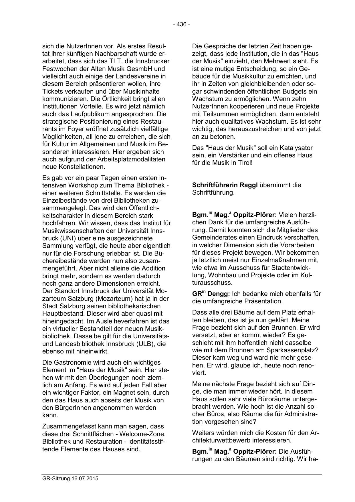 Bgm.in Mag.a Oppitz-Plörer: Vielen herzlichen Dank für die umfangreiche Ausführung. Damit konnten sich die Mitglieder des