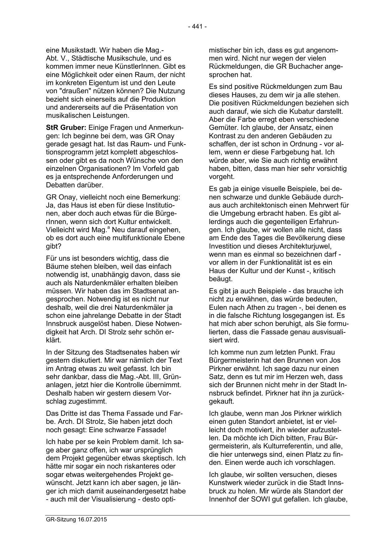 StR Gruber: Einige Fragen und Anmerkungen: Ich beginne bei dem, was GR Onay