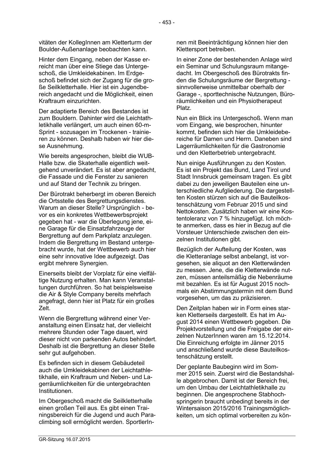 einen großen Teil aus. Es gibt einen Trainingsbereich für die Jugend und auch Paraclimbing soll ermöglicht werden. SportlerInGR-Sitzung 16.07.2015