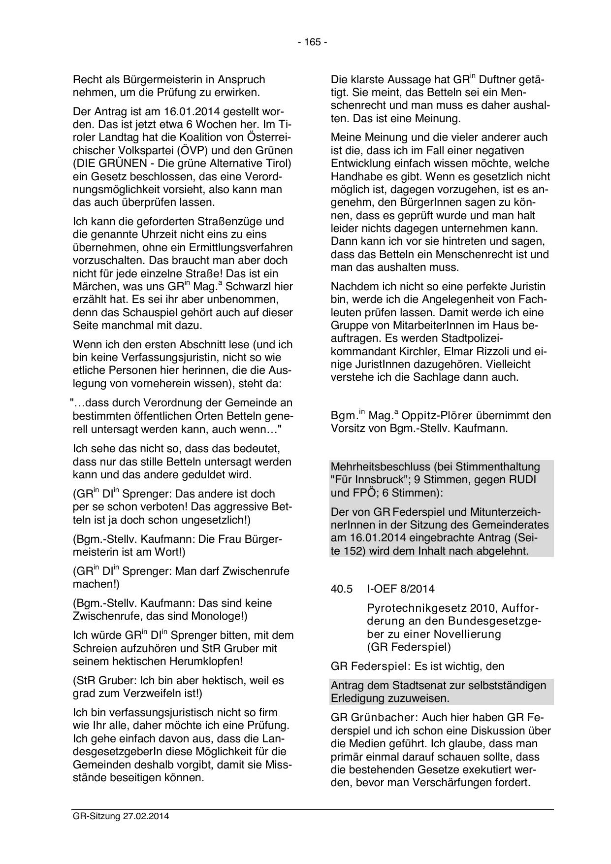 GR Grünbacher: Auch hier haben GR Federspiel und ich schon eine Diskussion über