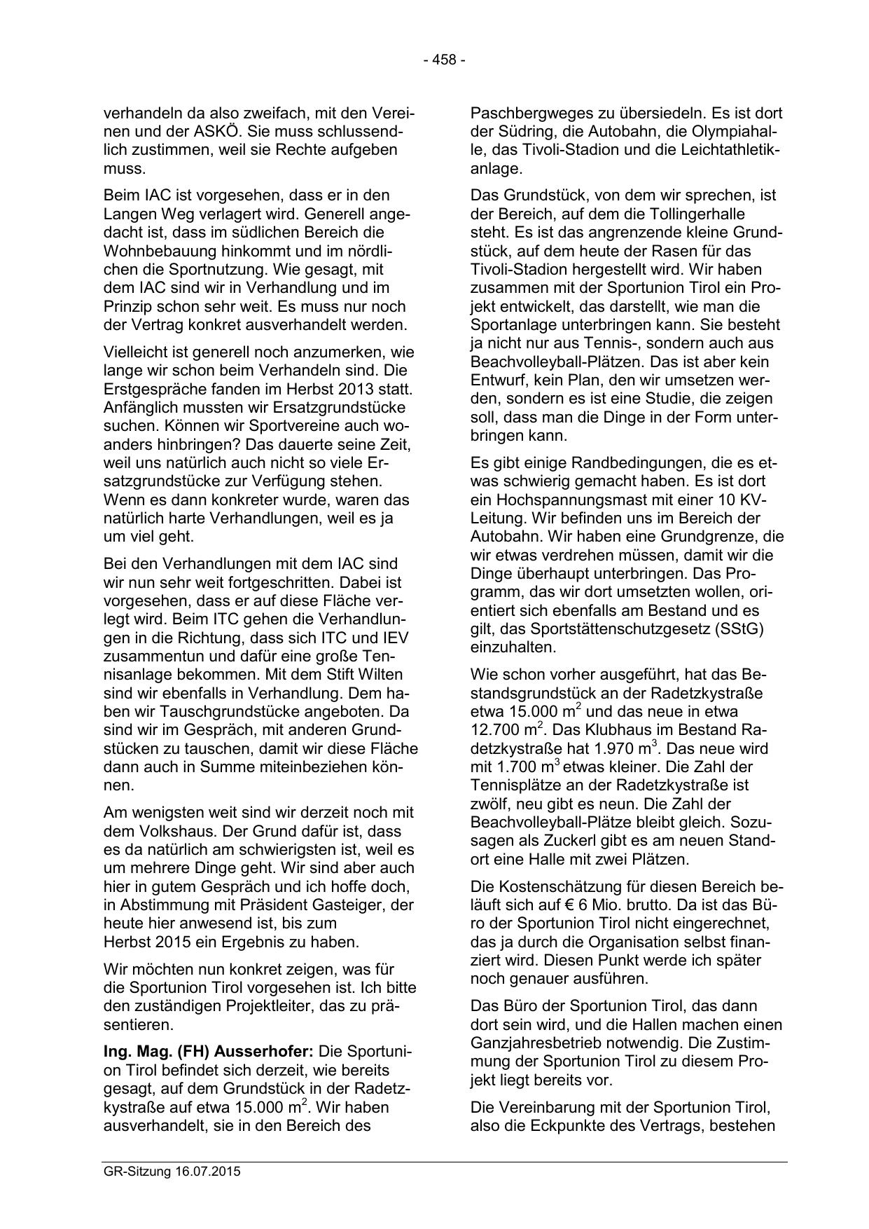 Ganzjahresbetrieb notwendig. Die Zustimmung der Sportunion Tirol zu diesem Projekt liegt bereits vor.