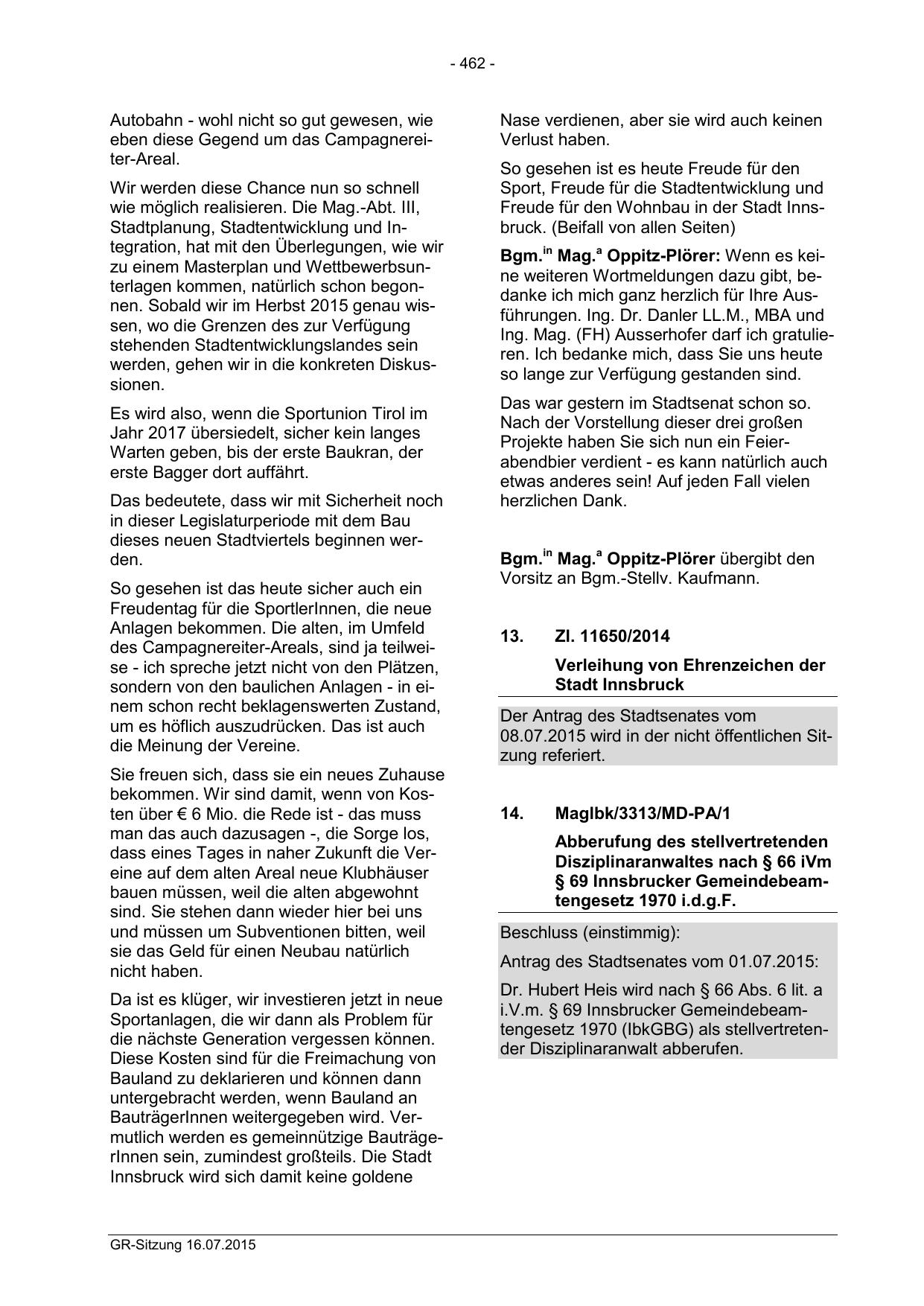 i.V.m. § 69 Innsbrucker Gemeindebeamtengesetz 1970 (IbkGBG) als stellvertretender Disziplinaranwalt abberufen.