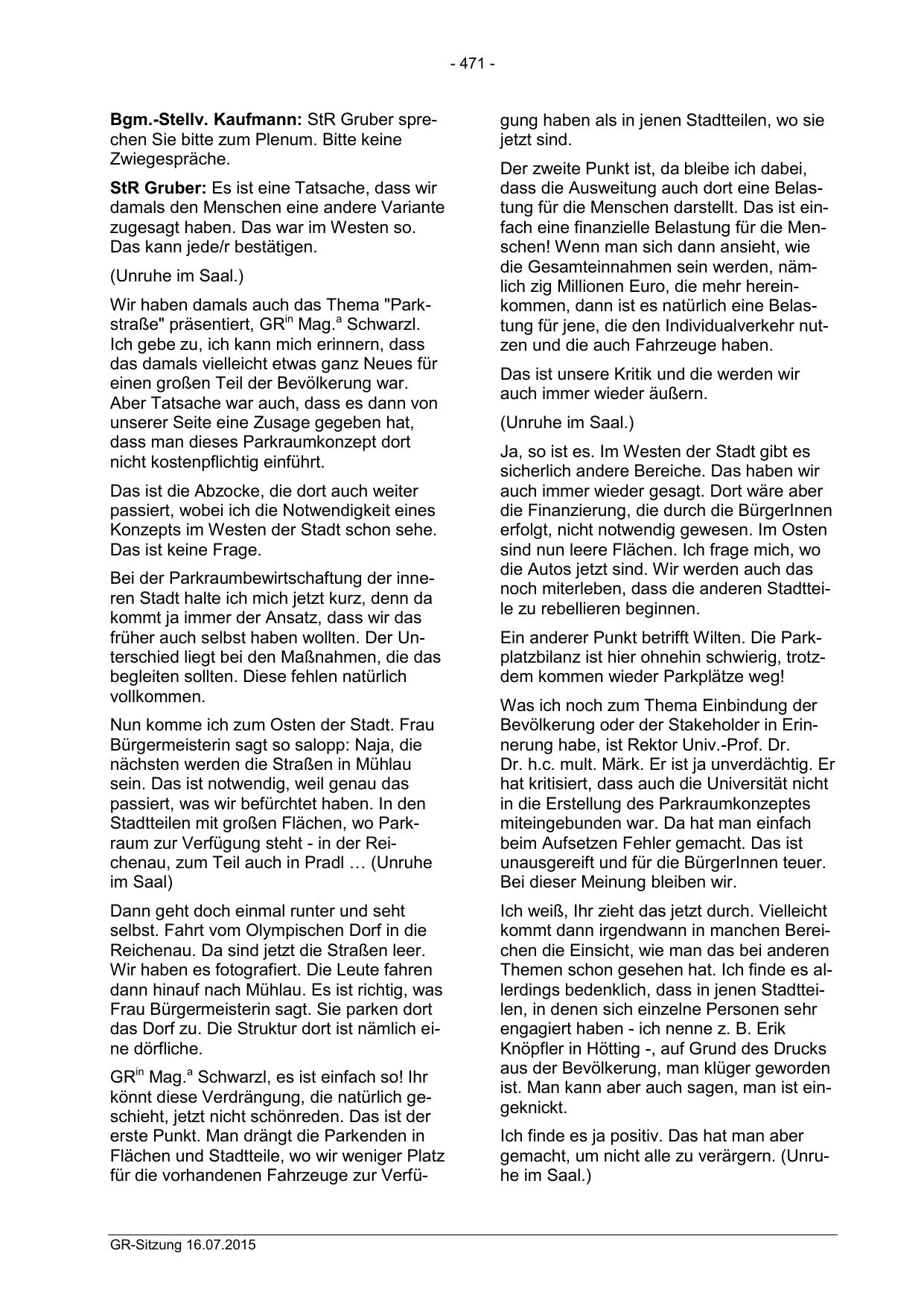Bgm.-Stellv. Kaufmann: StR Gruber sprechen Sie bitte zum Plenum. Bitte keine