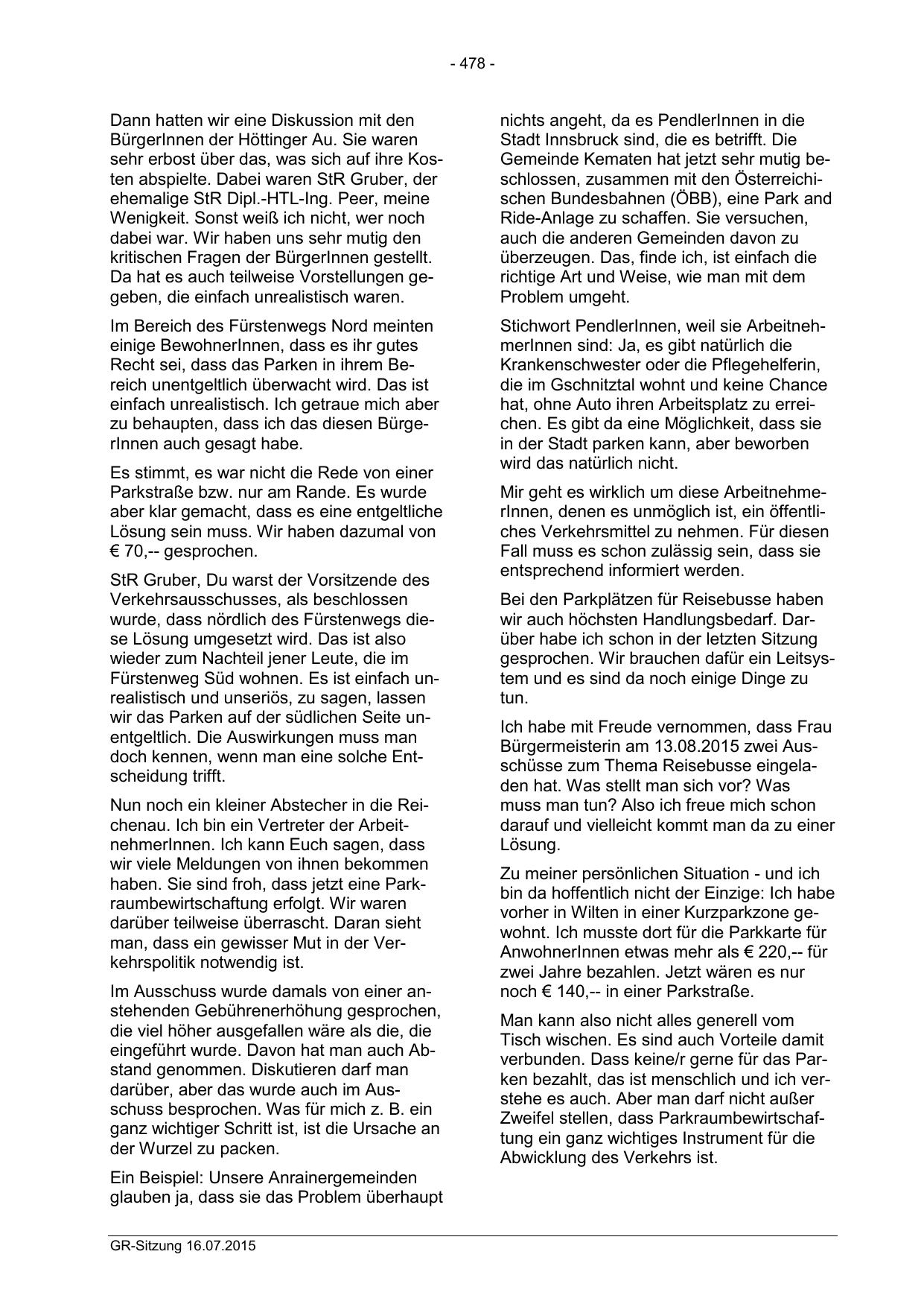 sehr erbost über das, was sich auf ihre Kosten abspielte. Dabei waren StR Gruber, der