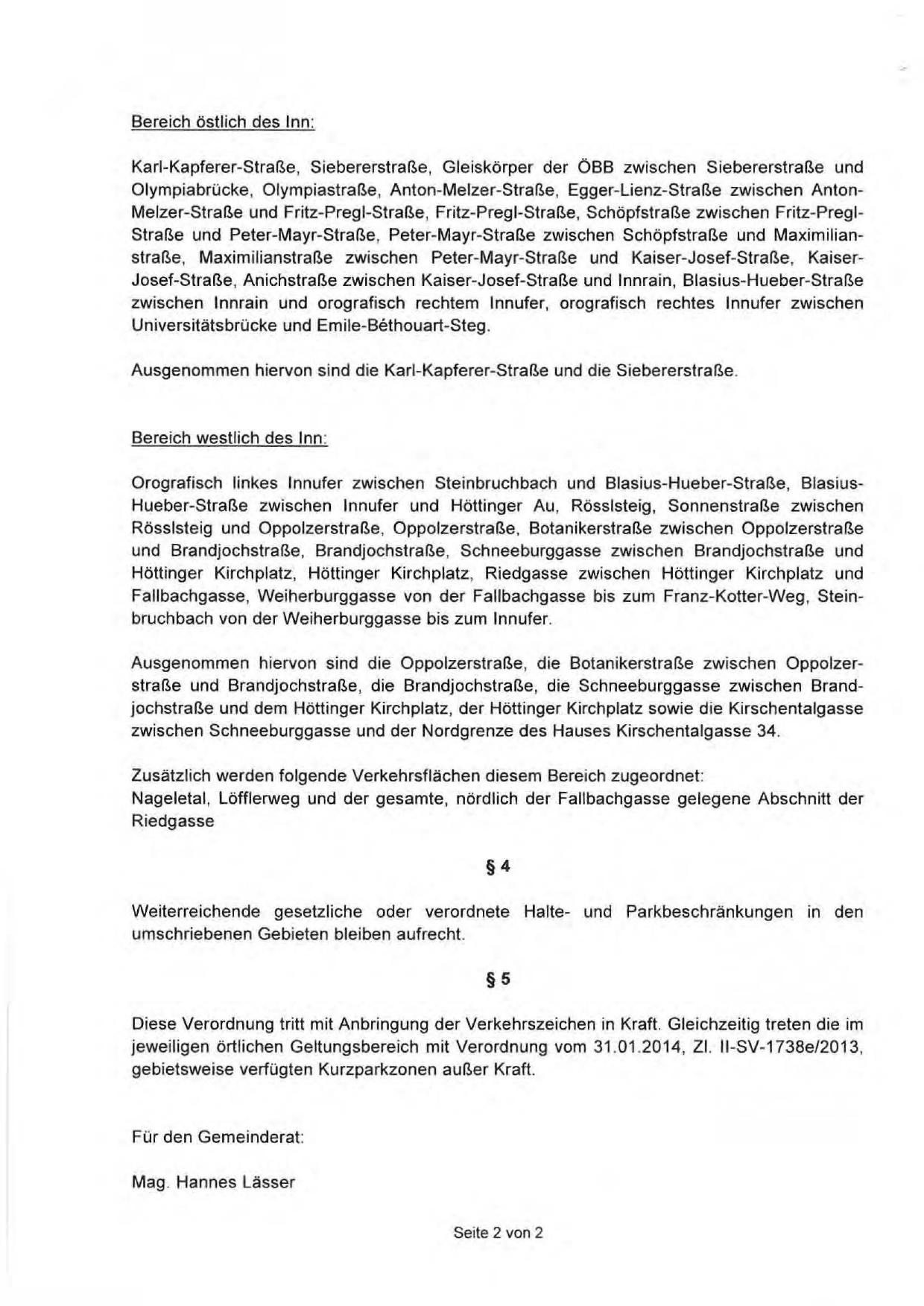 Ausgenommen hiervon sind die Oppolzerstraße, die Botanikerstraße zwischen Oppolzerstraße und Brandjochstraße, die Brandjochstraße , die Schneeburggasse zwischen Brandjochstraße und dem Höttinger Kirchplatz , der Höttinger Kirchplatz sowie die Kirschentalgasse