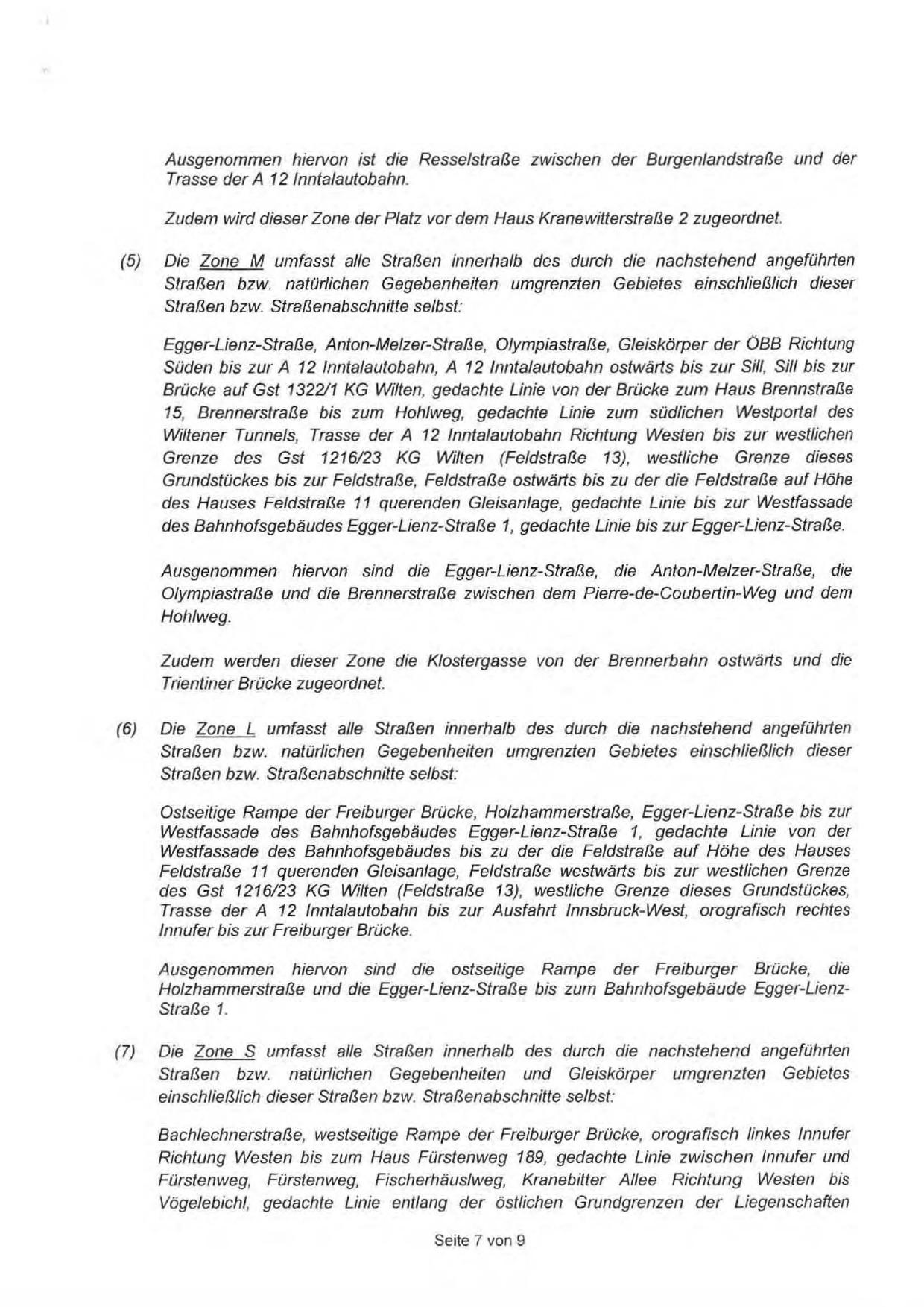 Zudem werden dieser Zone die Klostergasse von der Brennerbahn ostwärts und die