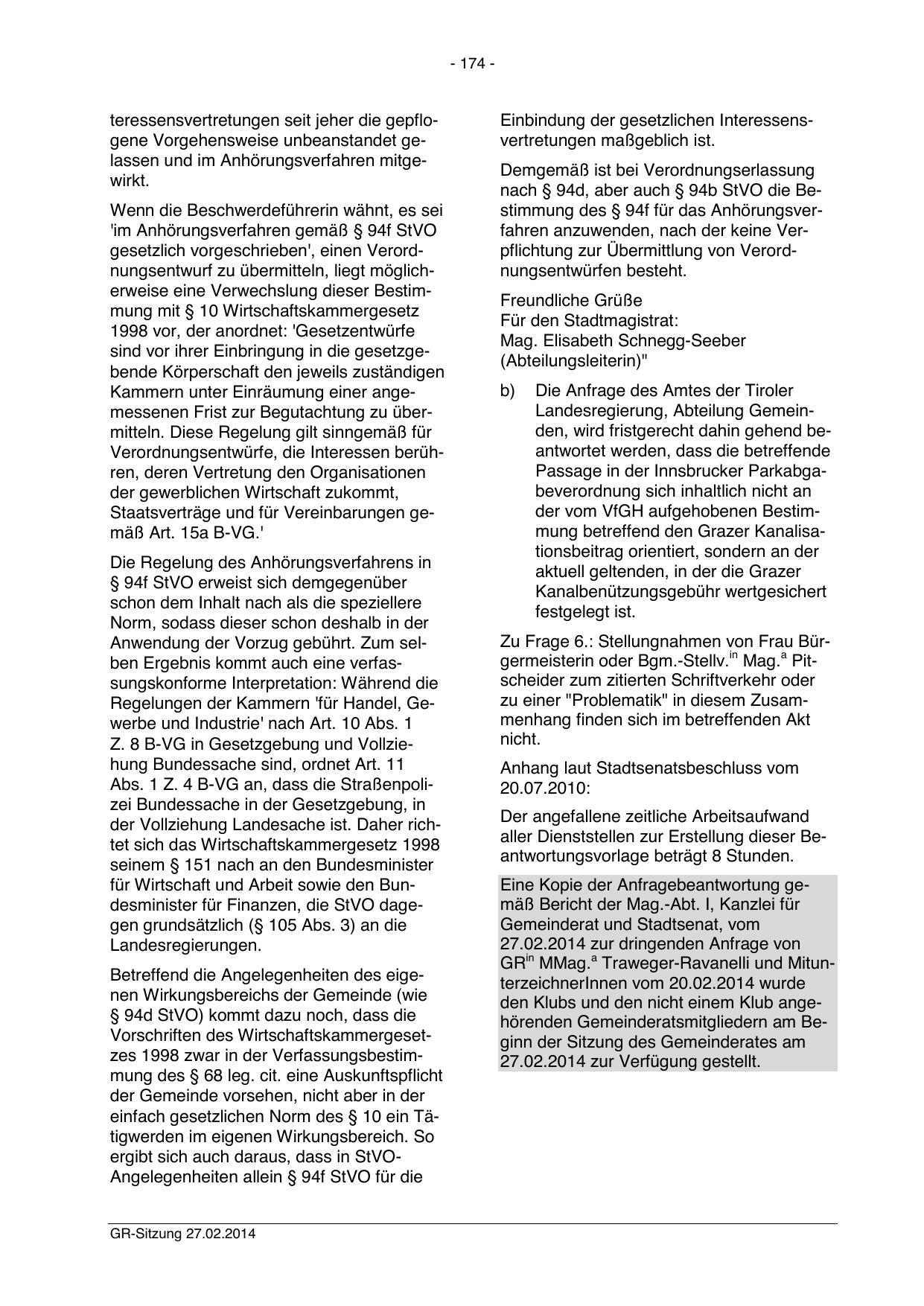 GRin MMag.a Traweger-Ravanelli und MitunterzeichnerInnen vom 20.02.2014 wurde
