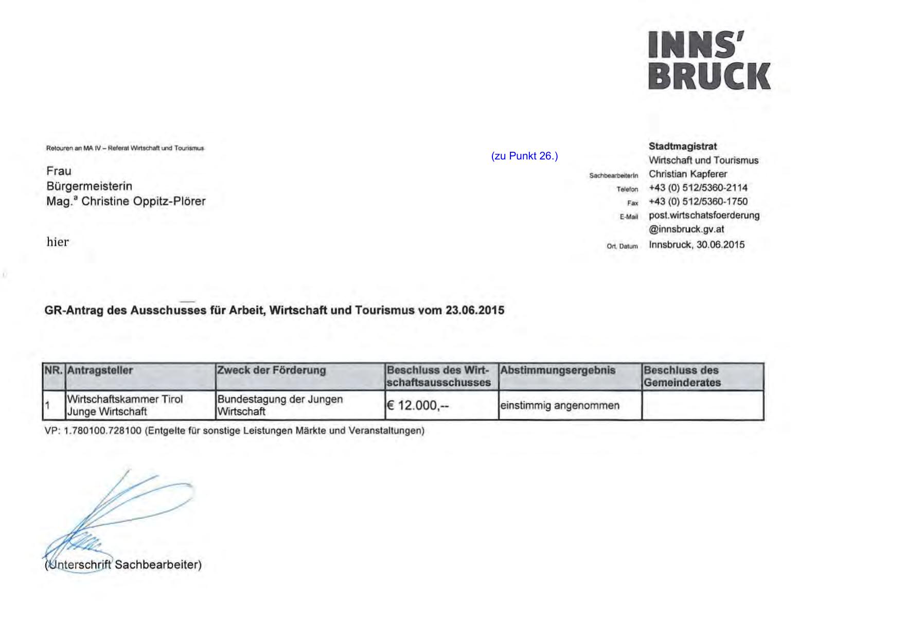 GR-Antrag des Ausschusses für Arbeit, Wirtschaft und Tourismus vom 23.06.2015