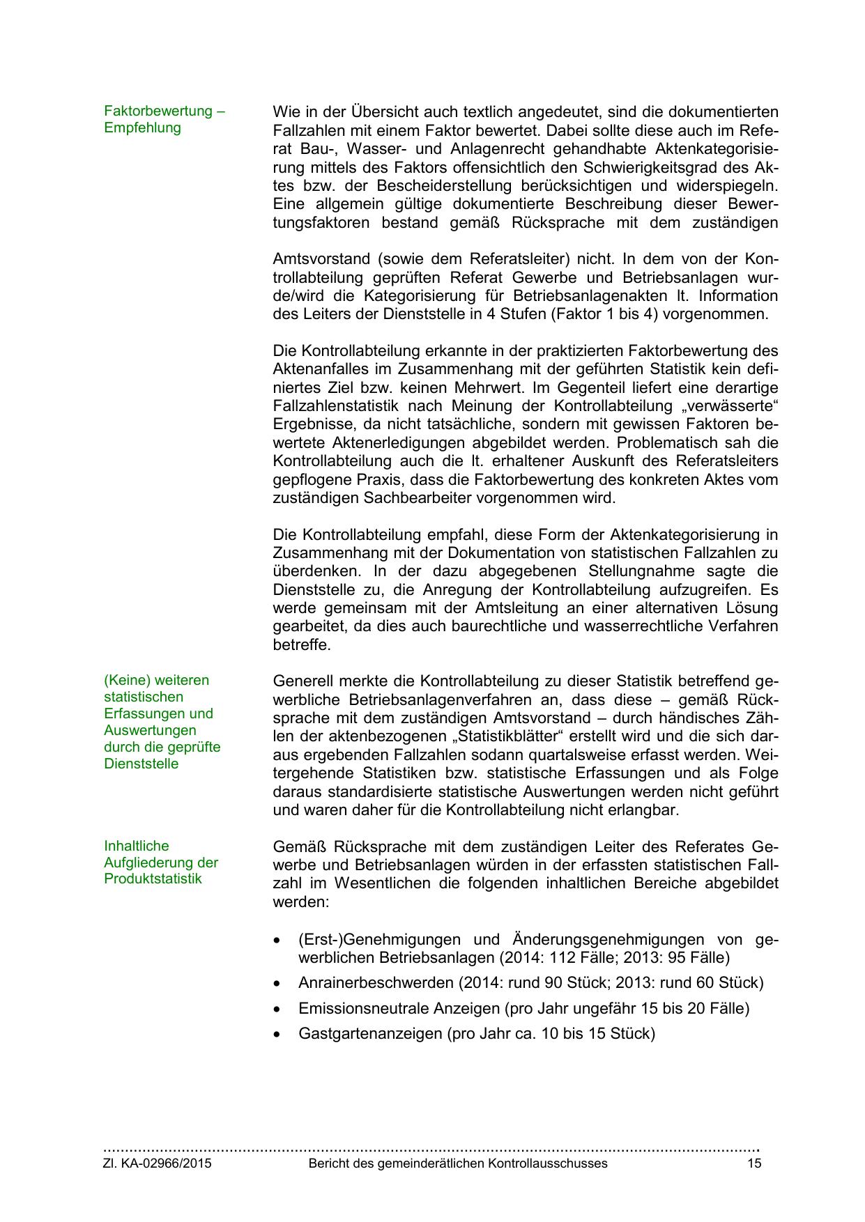 Amtsvorstand (sowie dem Referatsleiter) nicht. In dem von der Kontrollabteilung geprüften Referat Gewerbe und Betriebsanlagen wurde/wird die Kategorisierung für Betriebsanlagenakten lt. Information