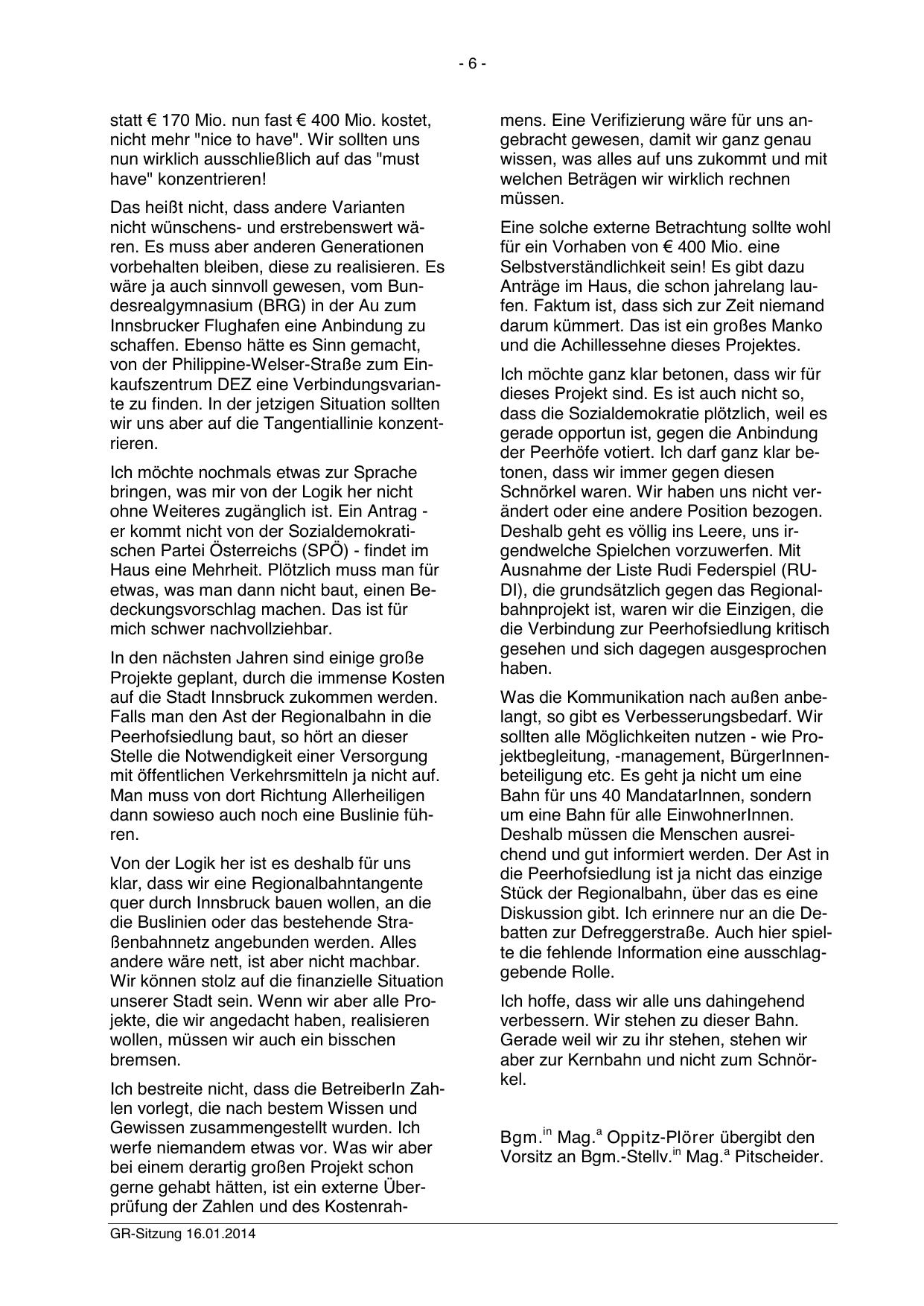 Vorsitz an Bgm.-Stellv.in Mag.a Pitscheider.