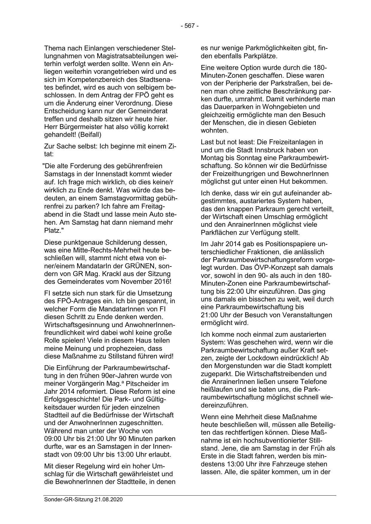 heißlaufen und sie baten uns, die Parkraumbewirtschaftung möglichst schnell wiedereinzuführen.