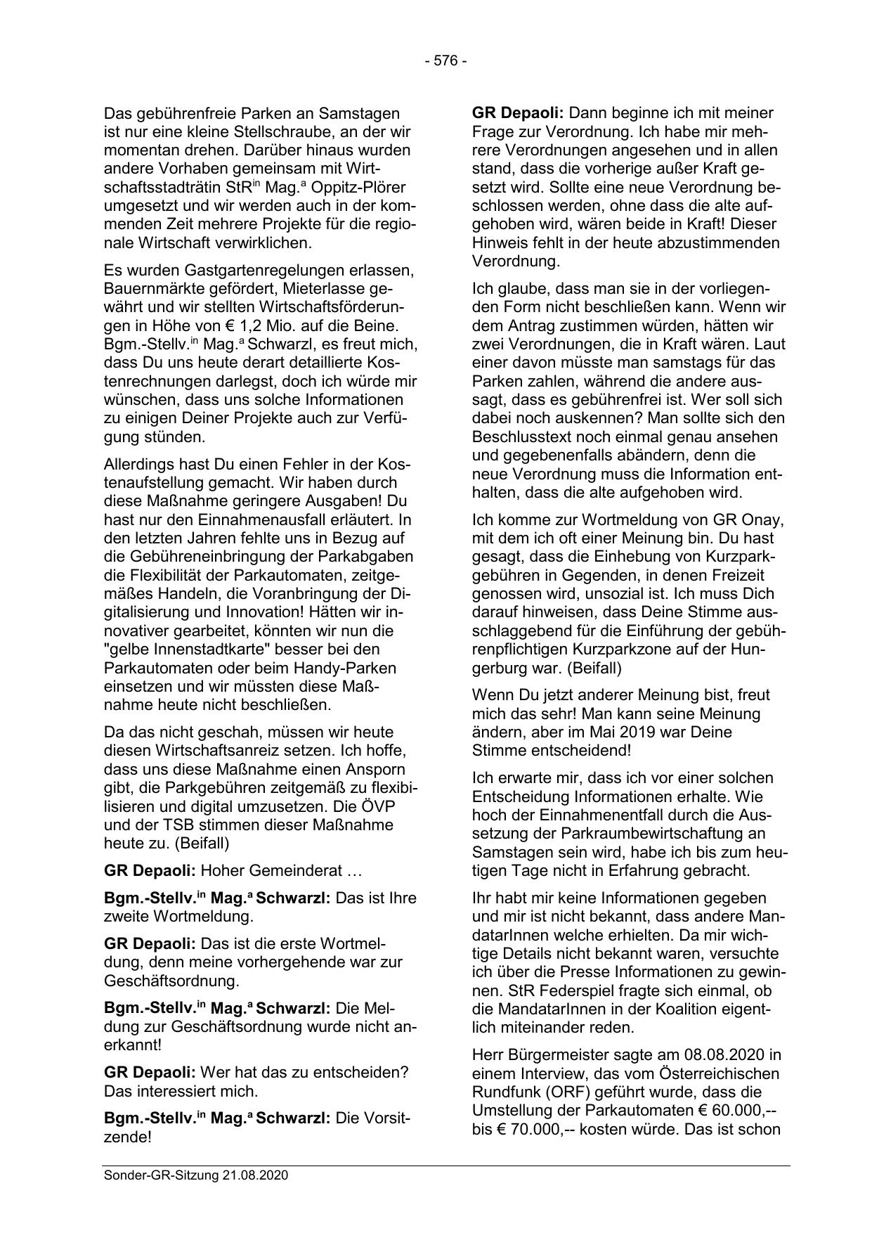 Umstellung der Parkautomaten € 60.000,-bis € 70.000,-- kosten würde. Das ist schon