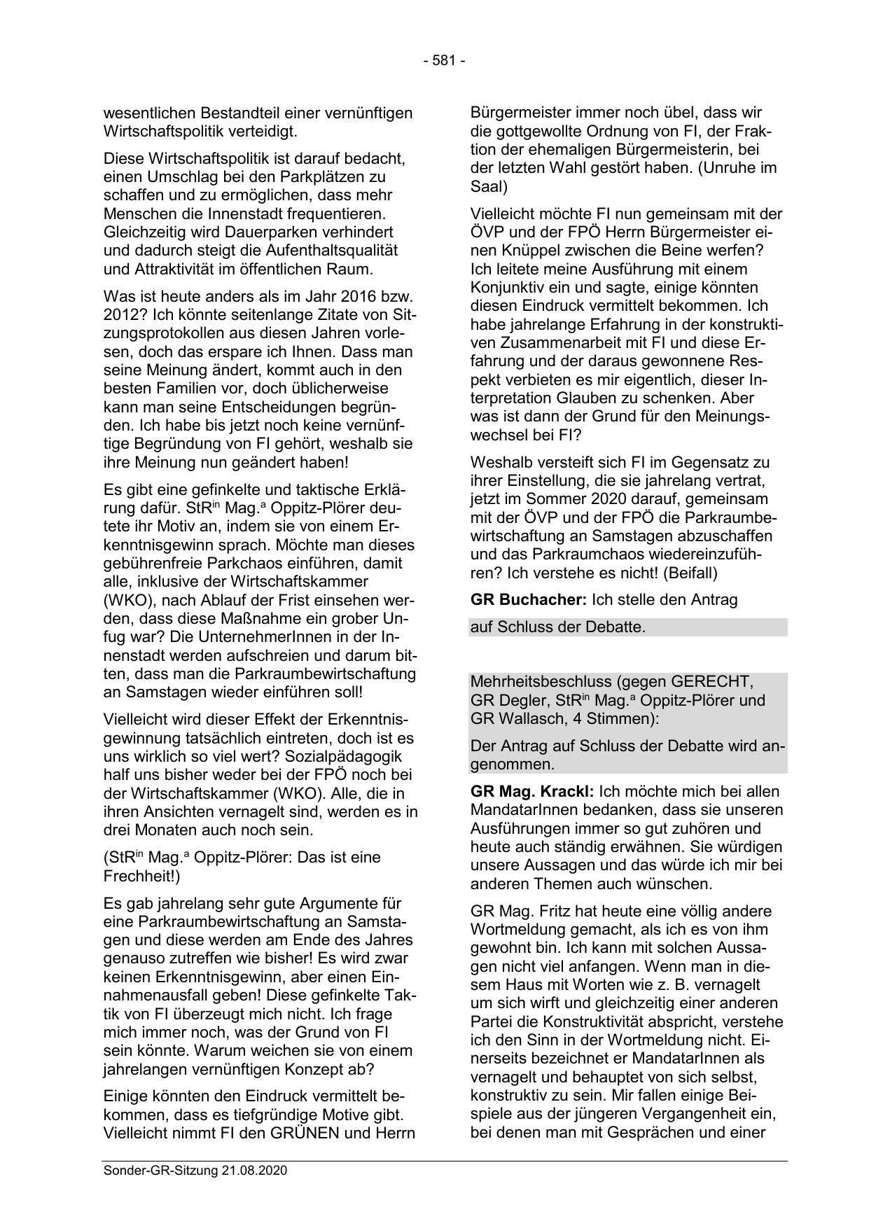 Sonder-GR-Sitzung 21.08.2020