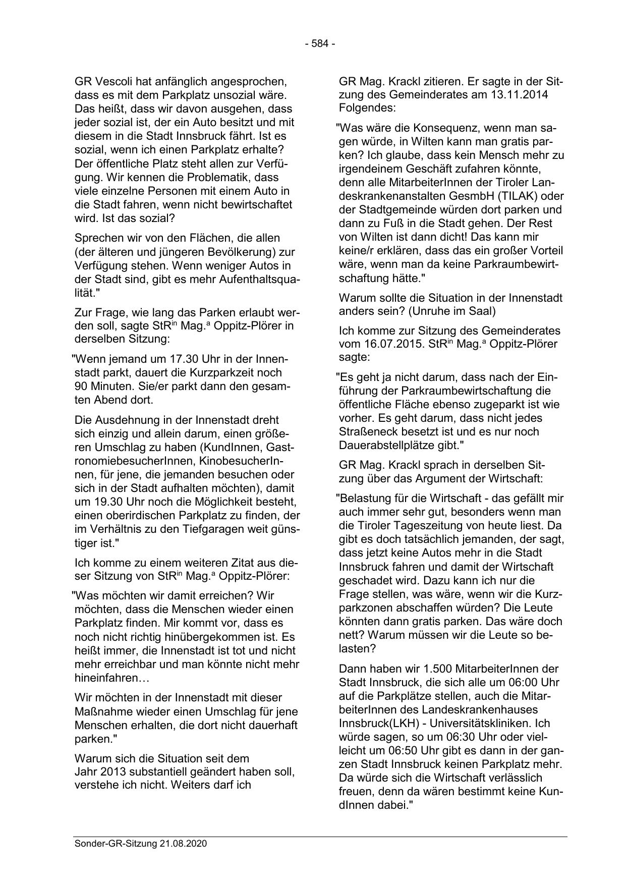 "Was wäre die Konsequenz, wenn man sagen würde, in Wilten kann man gratis parken? Ich glaube, dass kein Mensch mehr zu