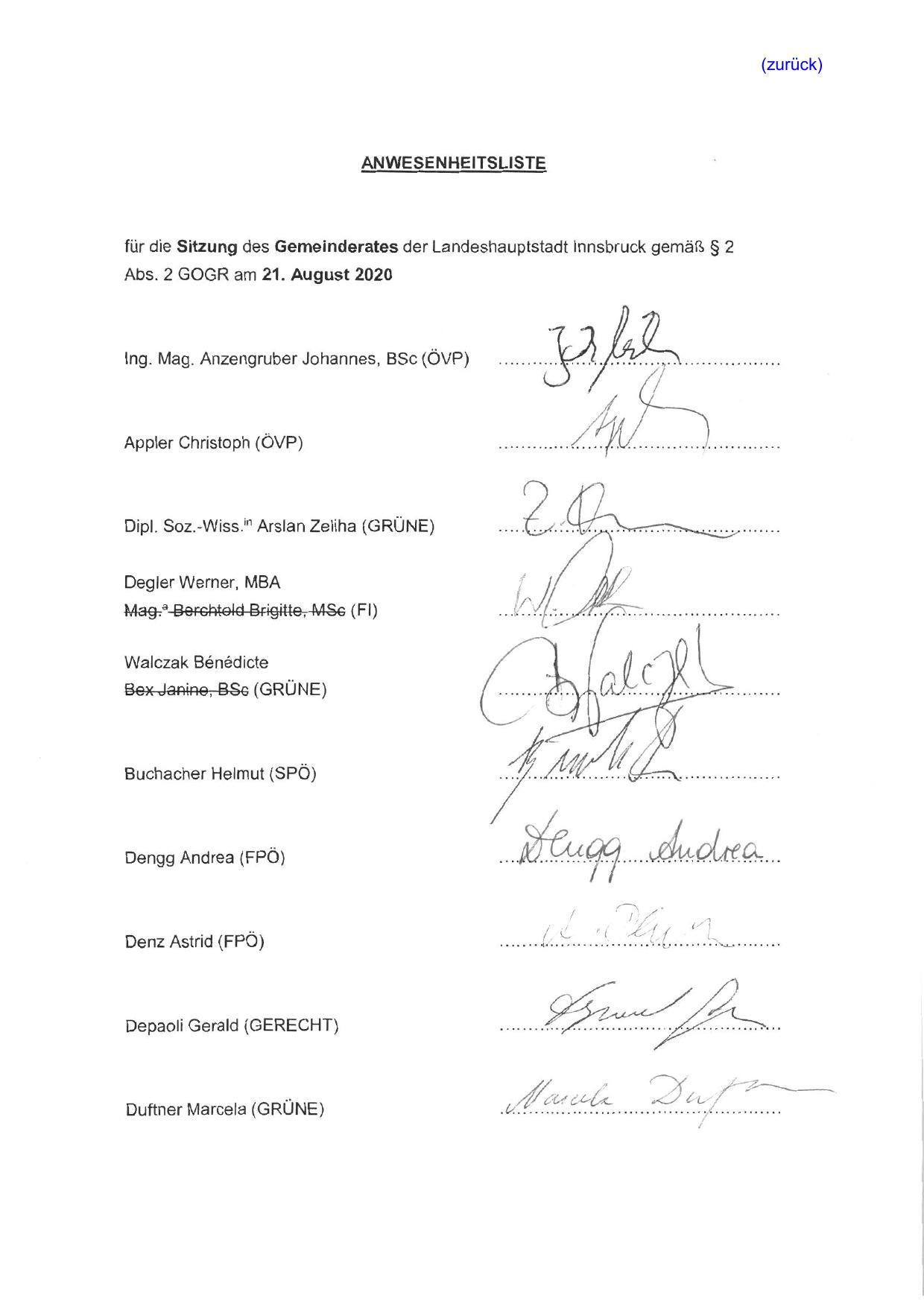 für die Sitzung des Gemeinderates der Landeshauptstadt Innsbruck gemäß § 2