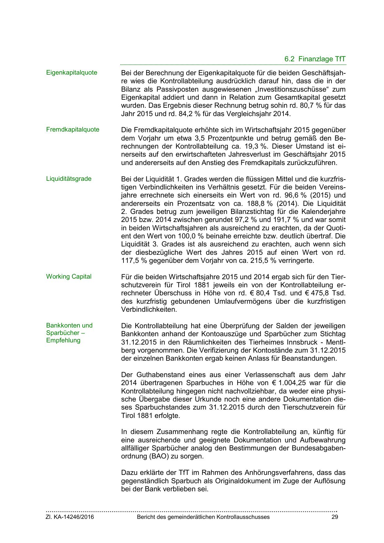 31.12.2015 in den Räumlichkeiten des Tierheimes Innsbruck - Mentlberg vorgenommen. Die Verifizierung der Kontostände zum 31.12.2015