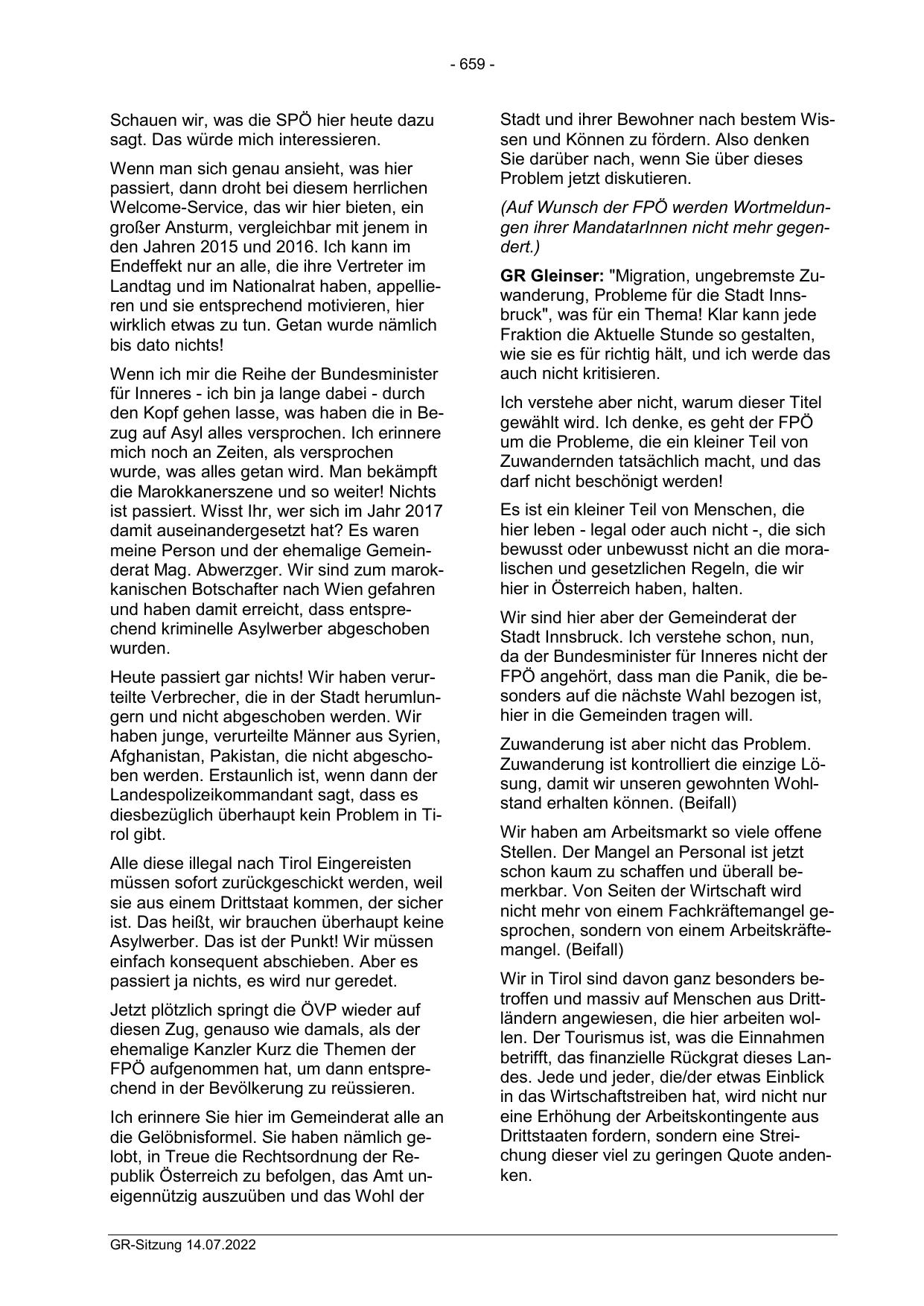 GR Gleinser: "Migration, ungebremste Zuwanderung, Probleme für die Stadt Innsbruck", was für ein Thema! Klar kann jede