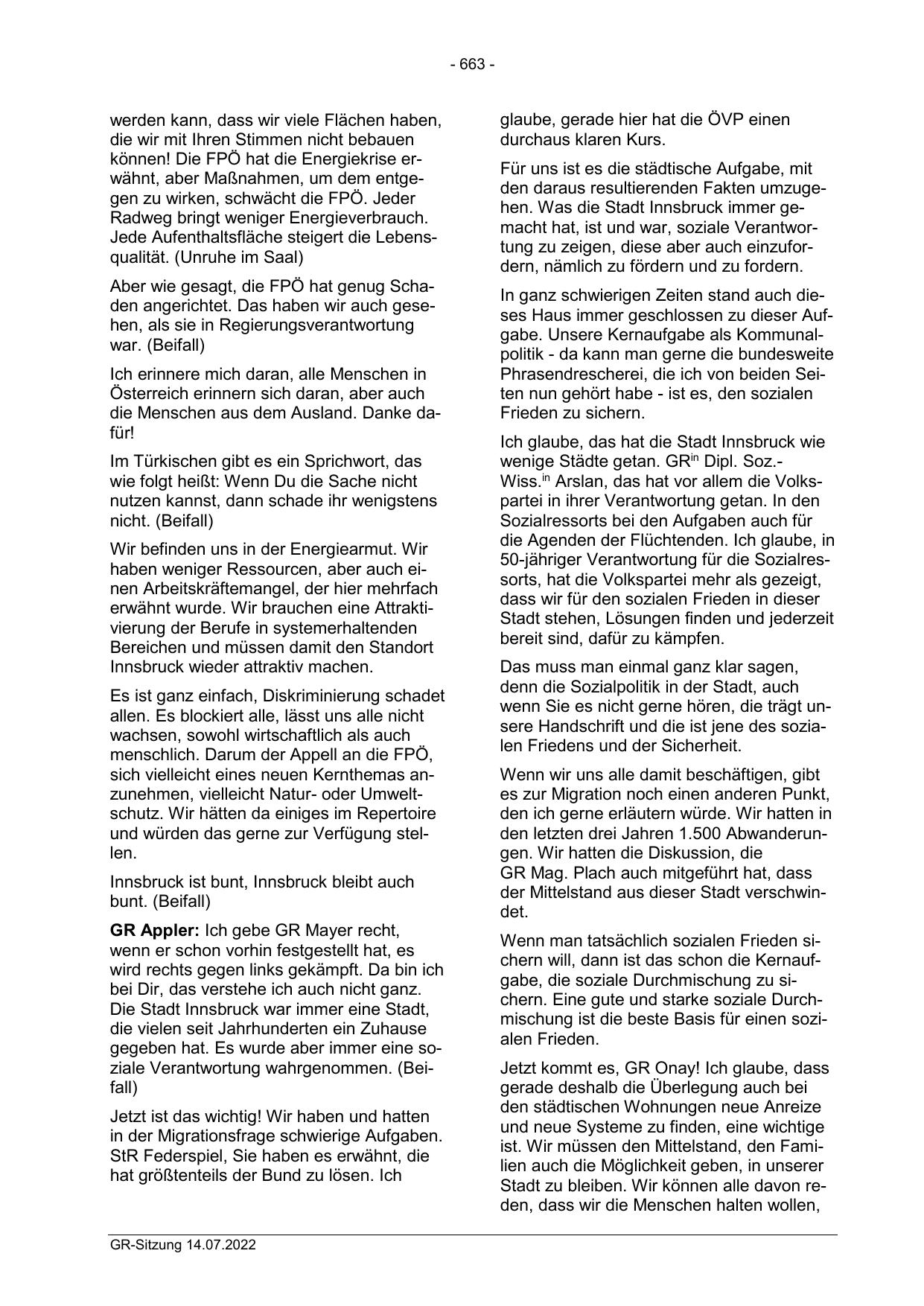 den daraus resultierenden Fakten umzugehen. Was die Stadt Innsbruck immer gemacht hat, ist und war, soziale Verantwortung zu zeigen, diese aber auch einzufordern, nämlich zu fördern und zu fordern.