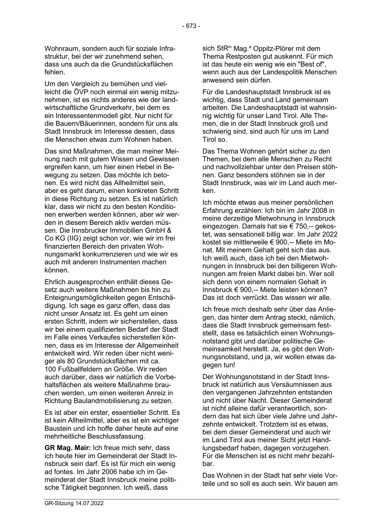 ich heute hier im Gemeinderat der Stadt Innsbruck sein darf. Es ist für mich ein wenig