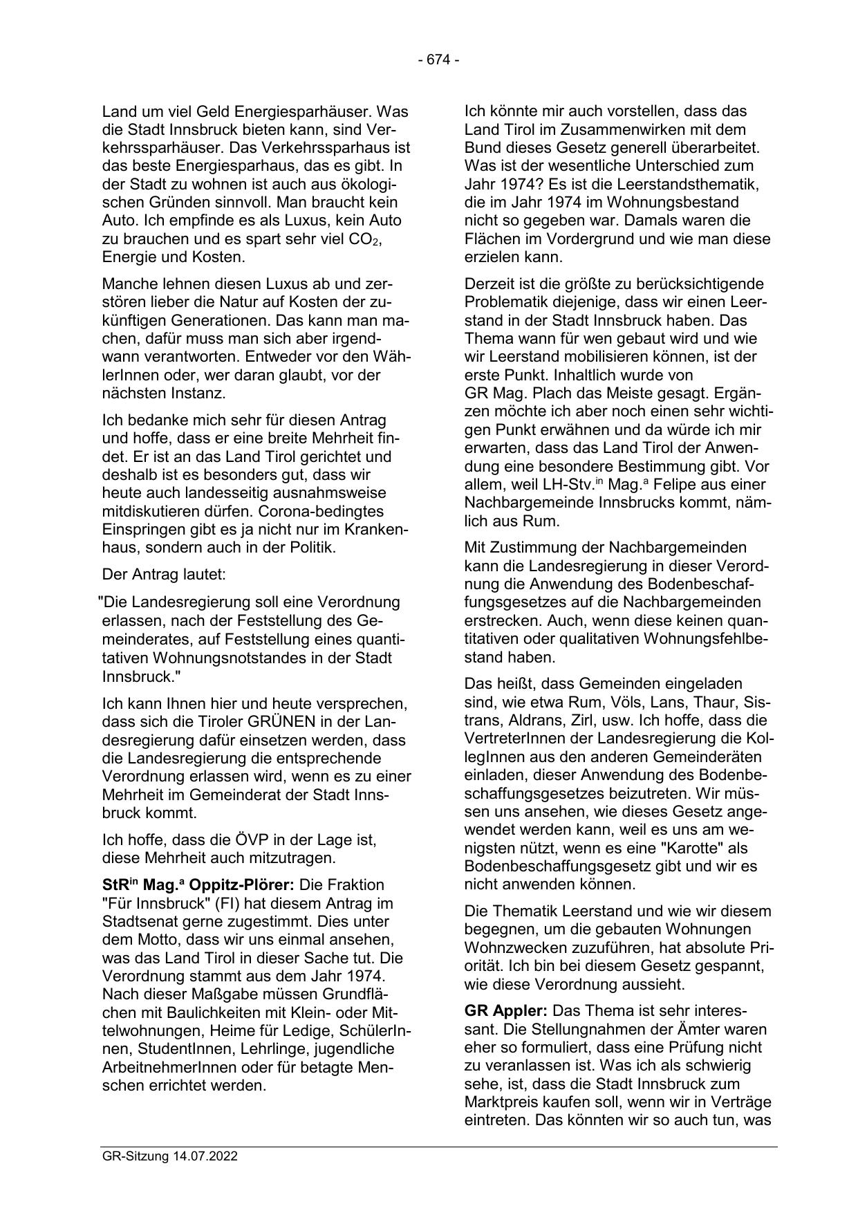 Problematik diejenige, dass wir einen Leerstand in der Stadt Innsbruck haben. Das
