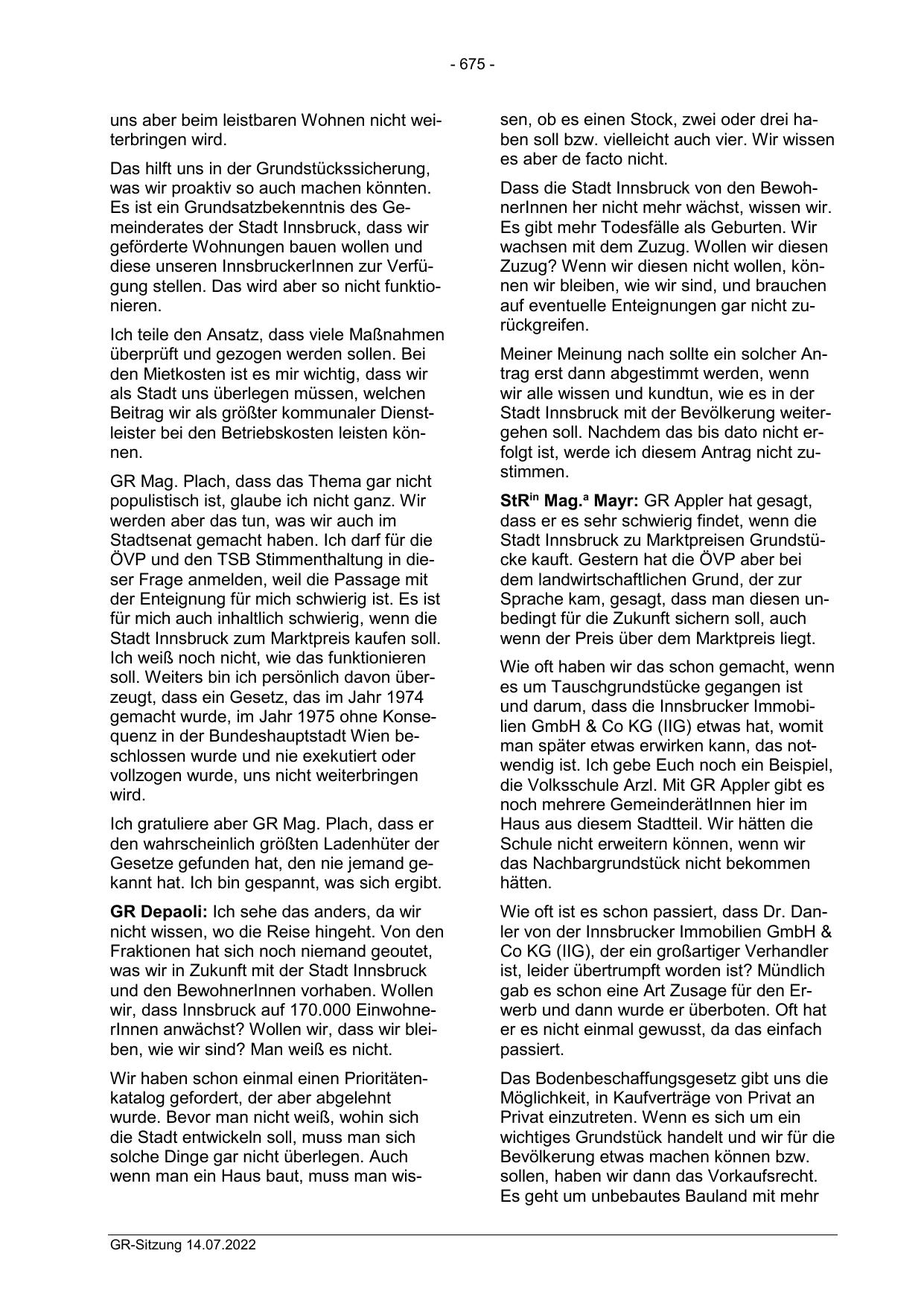 Stadt Innsbruck mit der Bevölkerung weitergehen soll. Nachdem das bis dato nicht erfolgt ist, werde ich diesem Antrag nicht zustimmen.