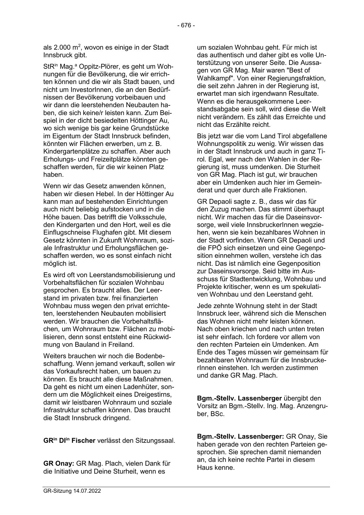 bezahlbaren Wohnraum für die InnsbruckerInnen einstehen. Ich werden zustimmen