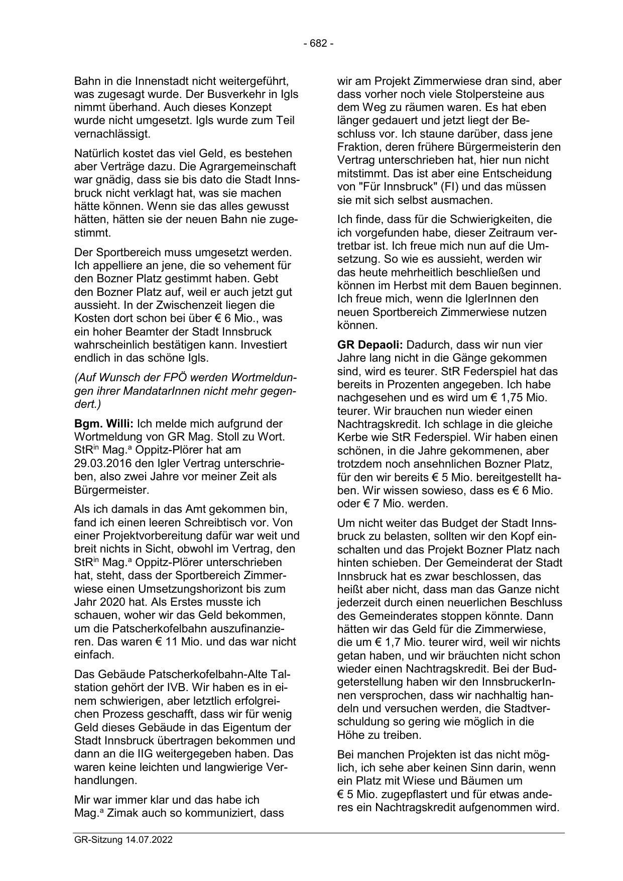 wieder einen Nachtragskredit. Bei der Budgeterstellung haben wir den InnsbruckerInnen versprochen, dass wir nachhaltig handeln und versuchen werden, die Stadtverschuldung so gering wie möglich in die