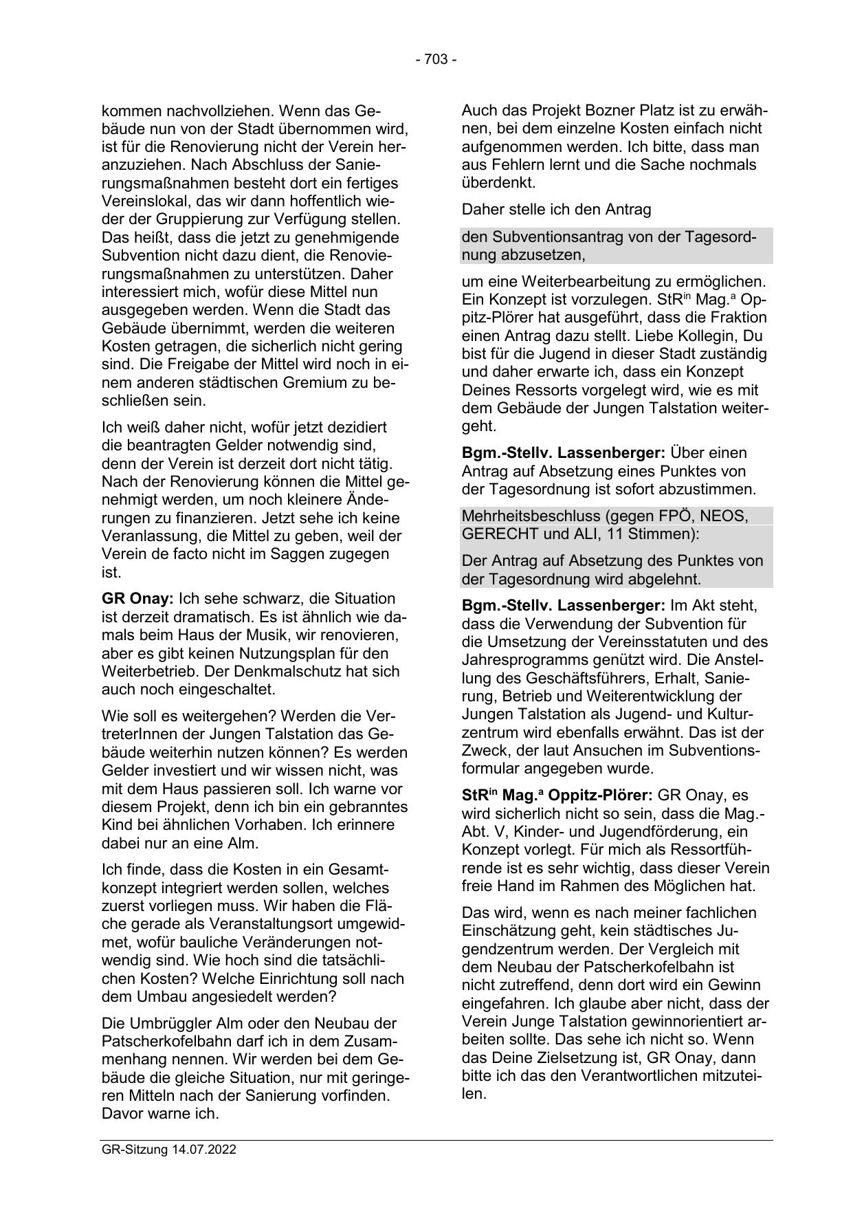 StRin Mag.a Oppitz-Plörer: GR Onay, es