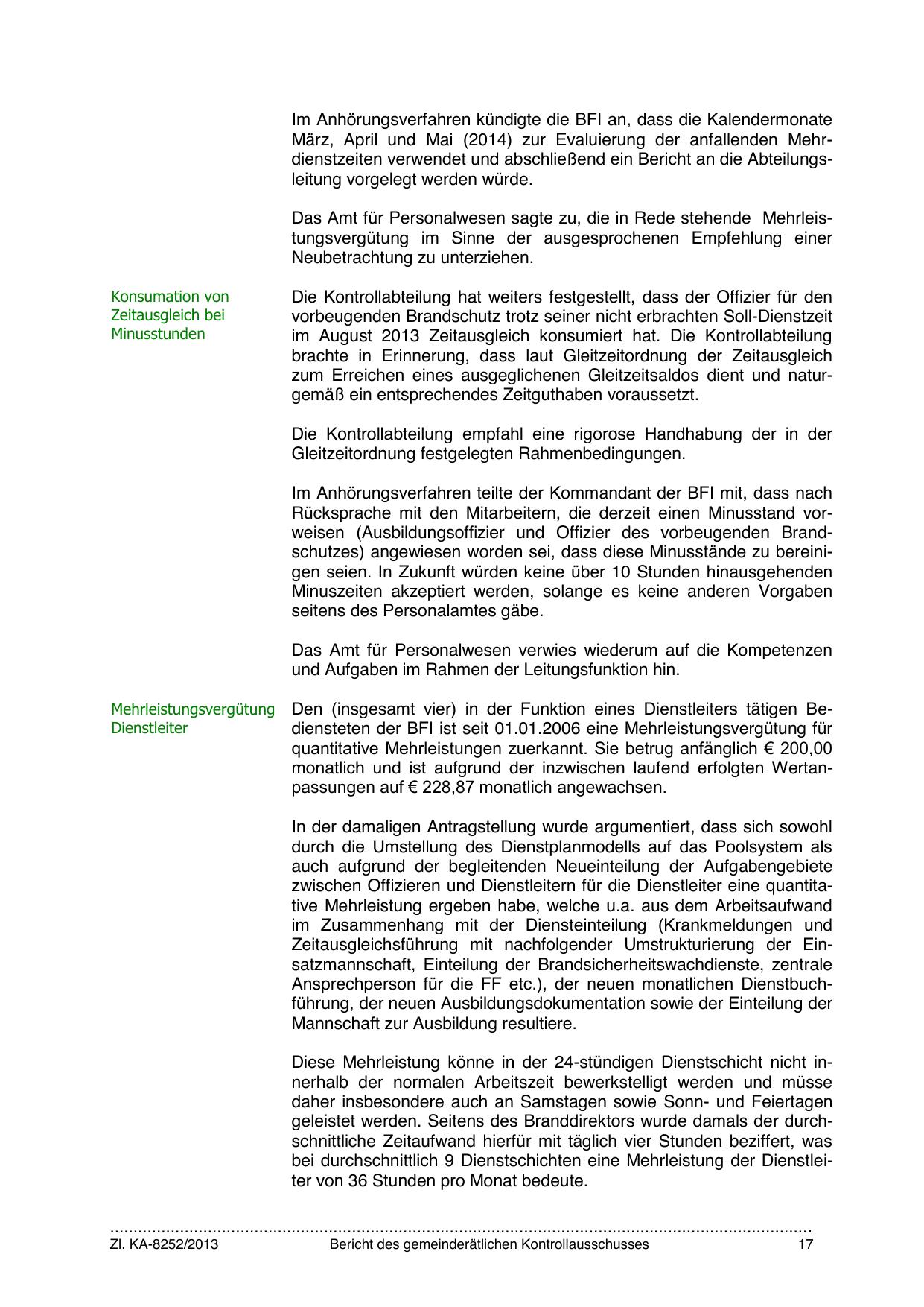 im August 2013 Zeitausgleich konsumiert hat. Die Kontrollabteilung