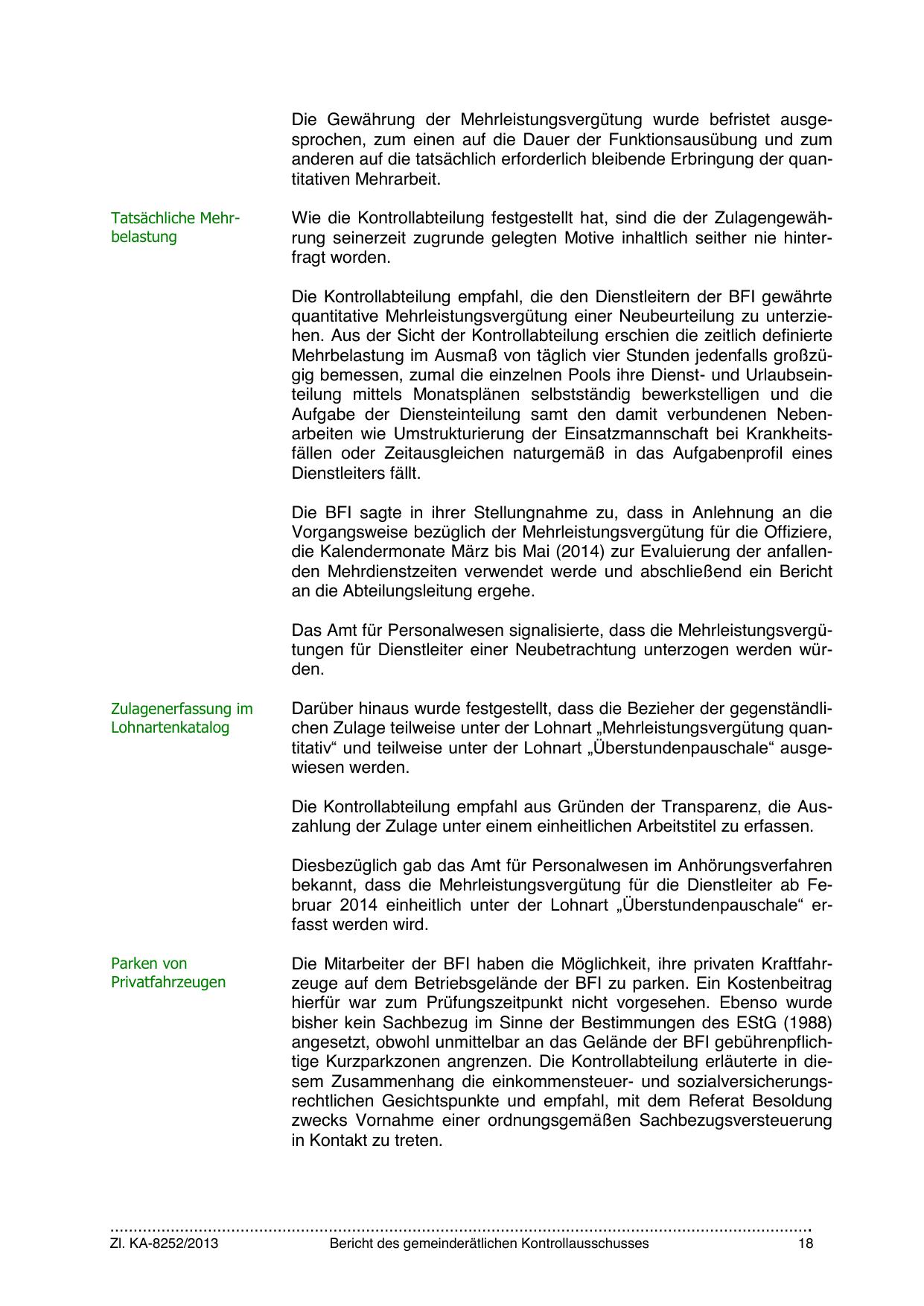 angesetzt, obwohl unmittelbar an das Gelände der BFI gebührenpflichtige Kurzparkzonen angrenzen. Die Kontrollabteilung erläuterte in diesem Zusammenhang die einkommensteuer- und sozialversicherungsrechtlichen Gesichtspunkte und empfahl, mit dem Referat Besoldung