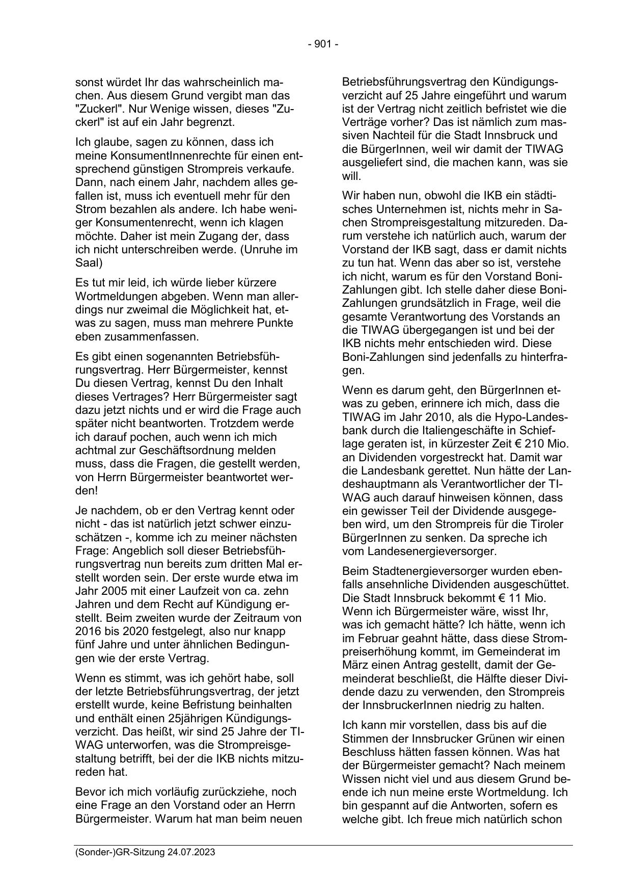und enthält einen 25jährigen Kündigungsverzicht. Das heißt, wir sind 25 Jahre der TIWAG unterworfen, was die Strompreisgestaltung betrifft, bei der die IKB nichts mitzureden hat.