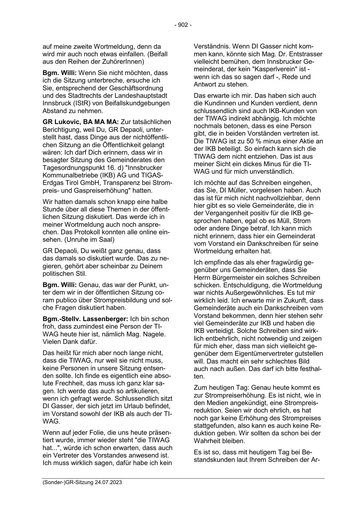 Bgm. Willi: Genau, das war der Punkt, unter dem wir in der öffentlichen Sitzung coram publico über Strompreisbildung und solche Fragen diskutiert haben.