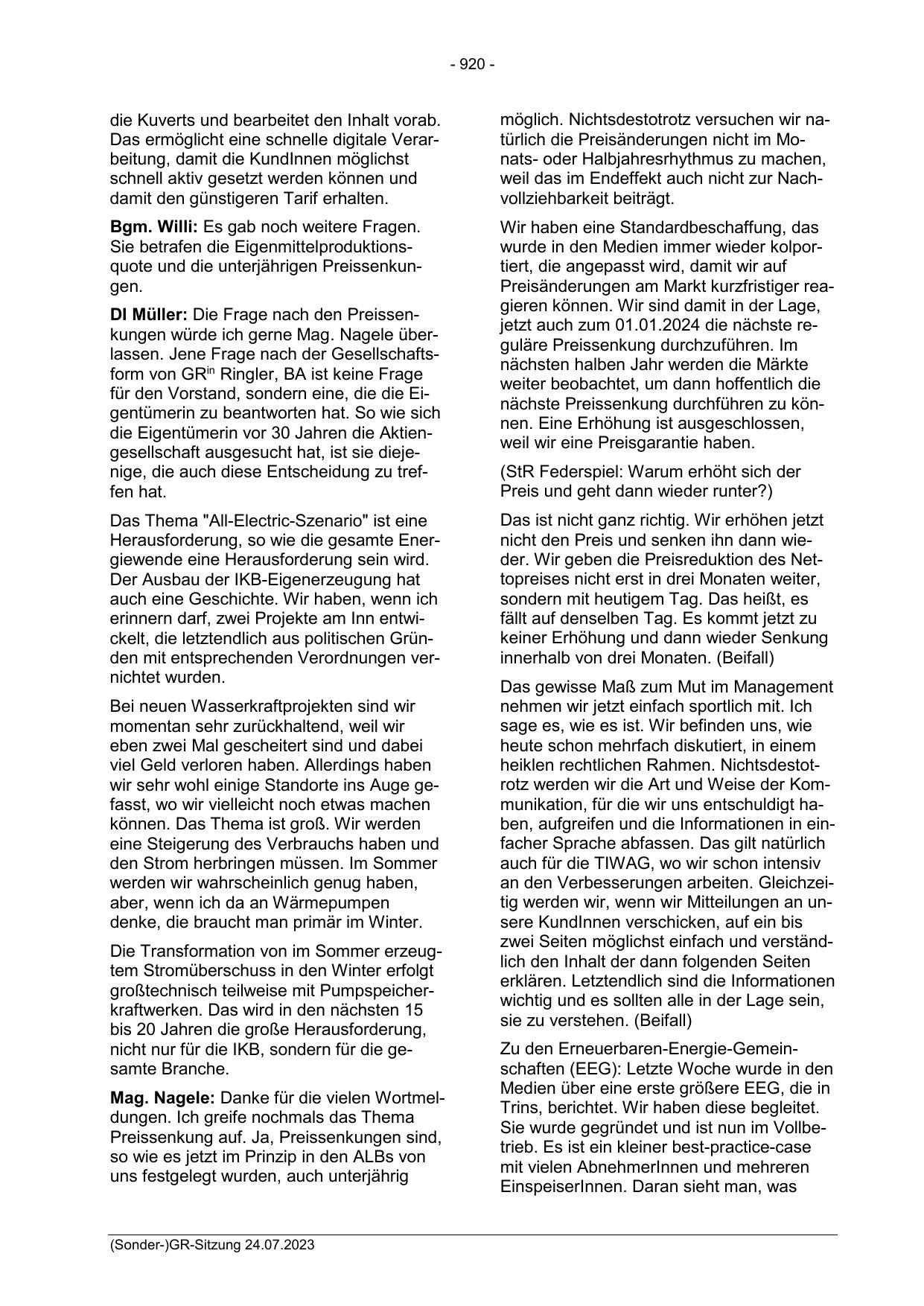 DI Müller: Die Frage nach den Preissenkungen würde ich gerne Mag. Nagele überlassen. Jene Frage nach der Gesellschaftsform von GRin Ringler, BA ist keine Frage