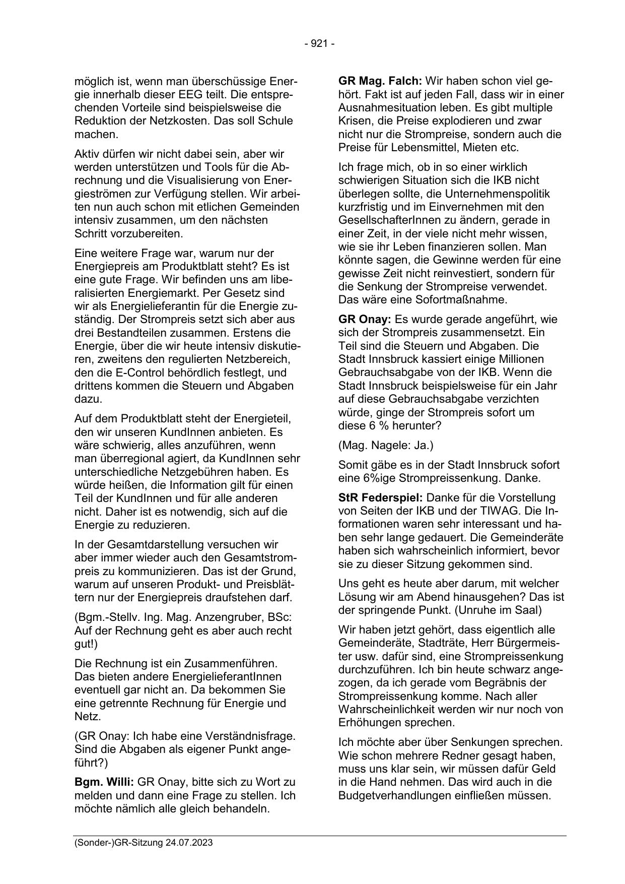 von Seiten der IKB und der TIWAG. Die Informationen waren sehr interessant und haben sehr lange gedauert. Die Gemeinderäte