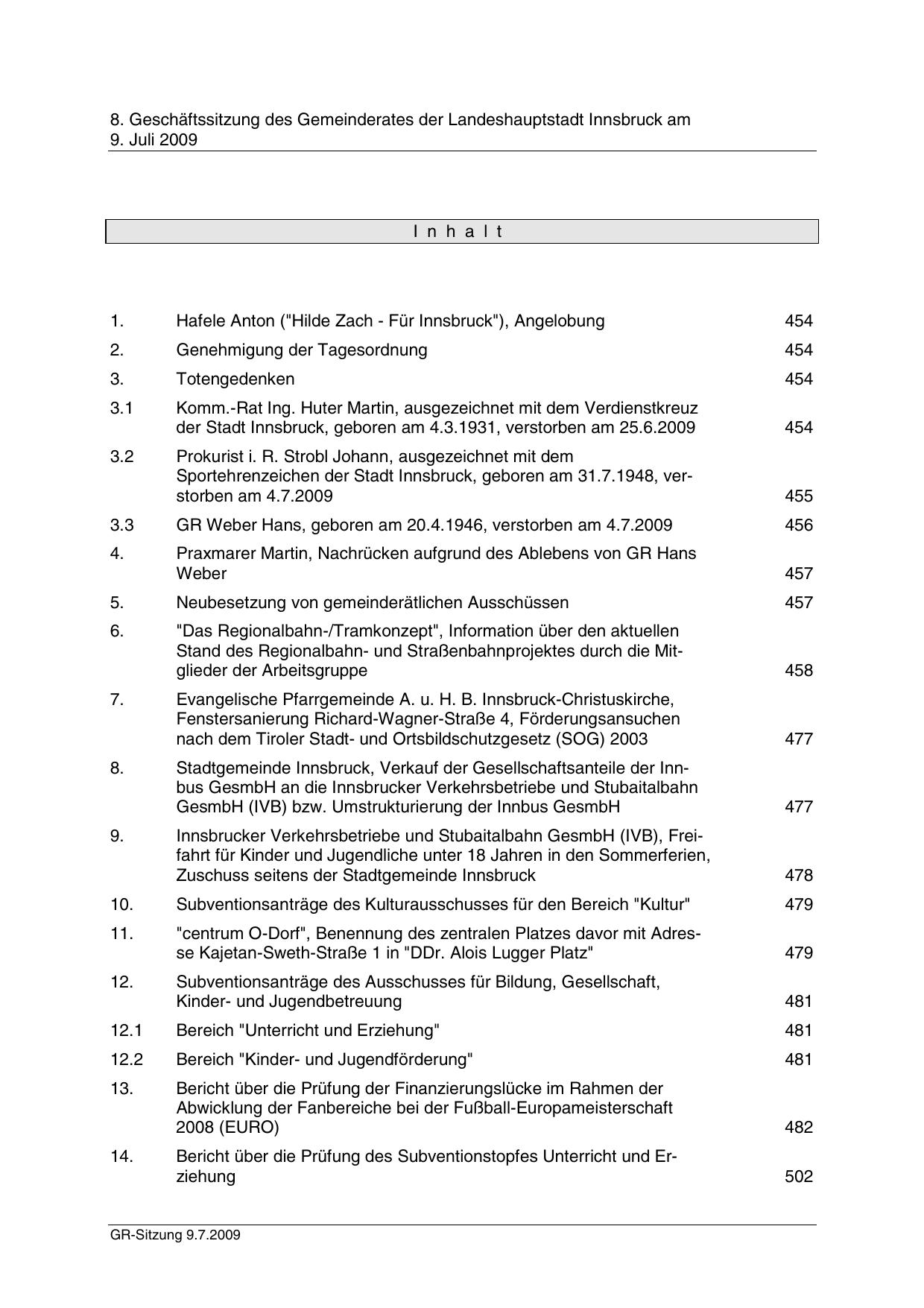 8. Geschäftssitzung des Gemeinderates der Landeshauptstadt Innsbruck am