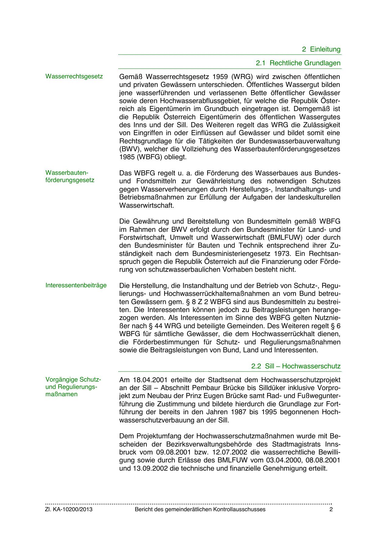 des Inns und der Sill. Des Weiteren regelt das WRG die Zulässigkeit