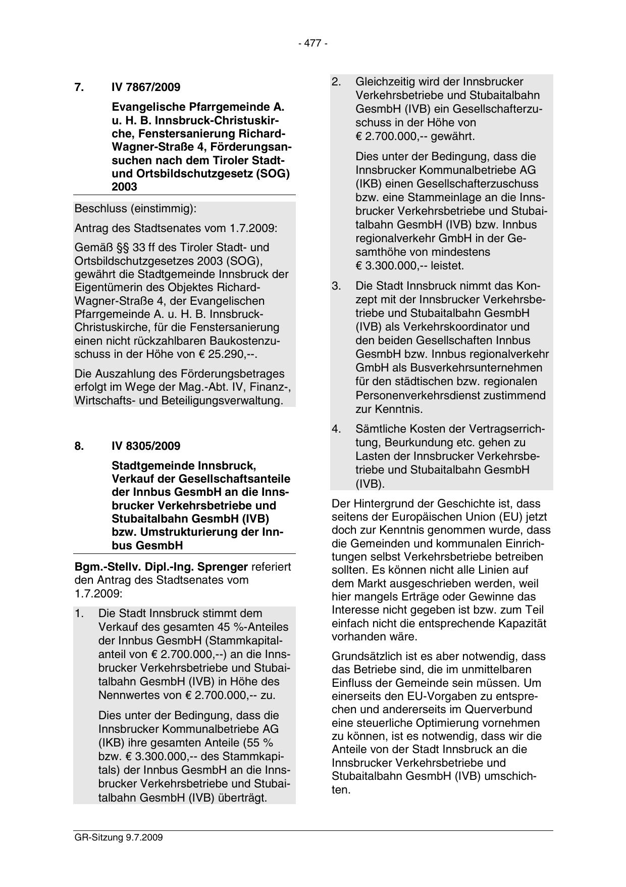 bzw. eine Stammeinlage an die Innsbrucker Verkehrsbetriebe und Stubaitalbahn GesmbH (IVB) bzw. Innbus