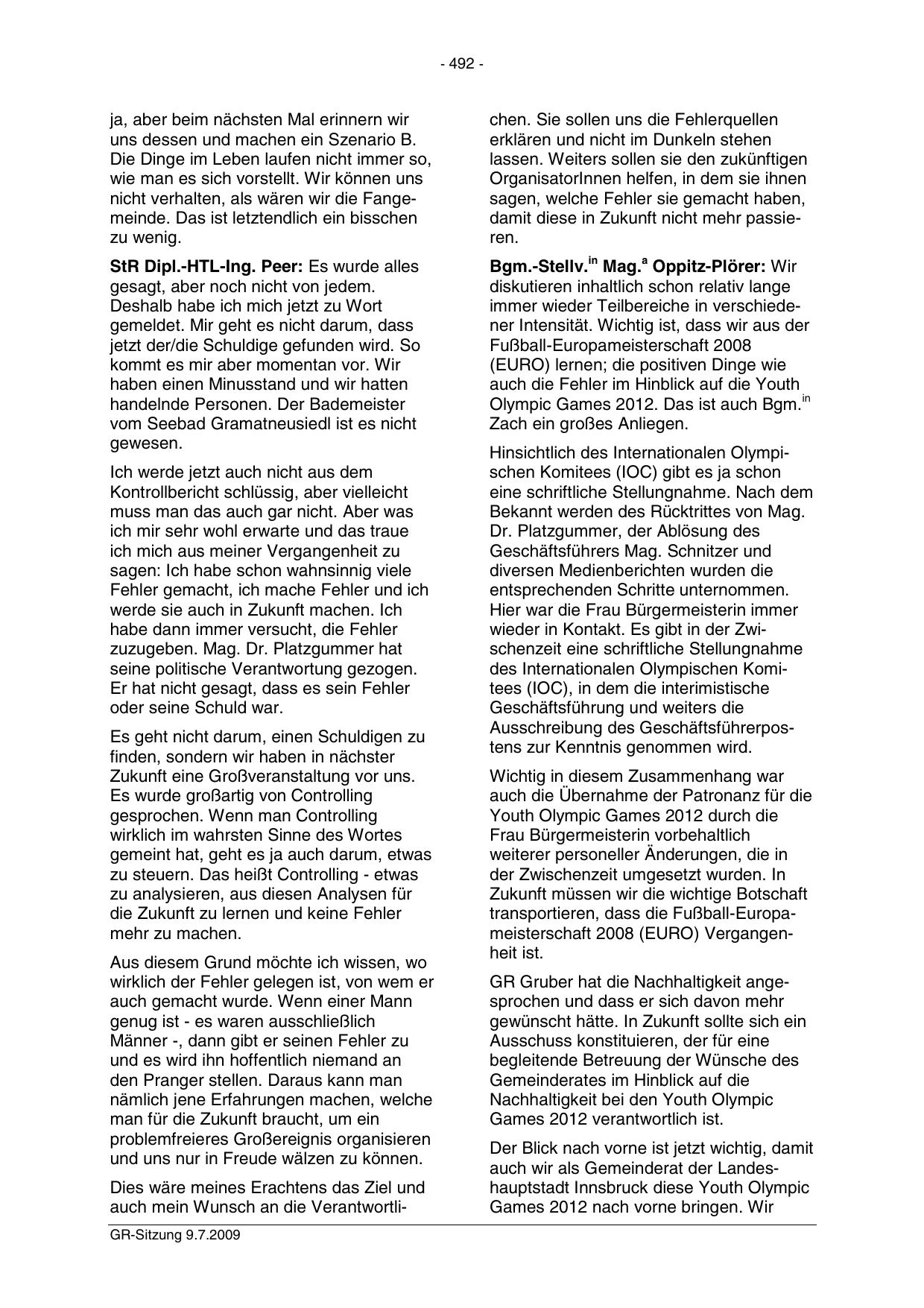 auch mein Wunsch an die VerantwortliGR-Sitzung 9.7.2009