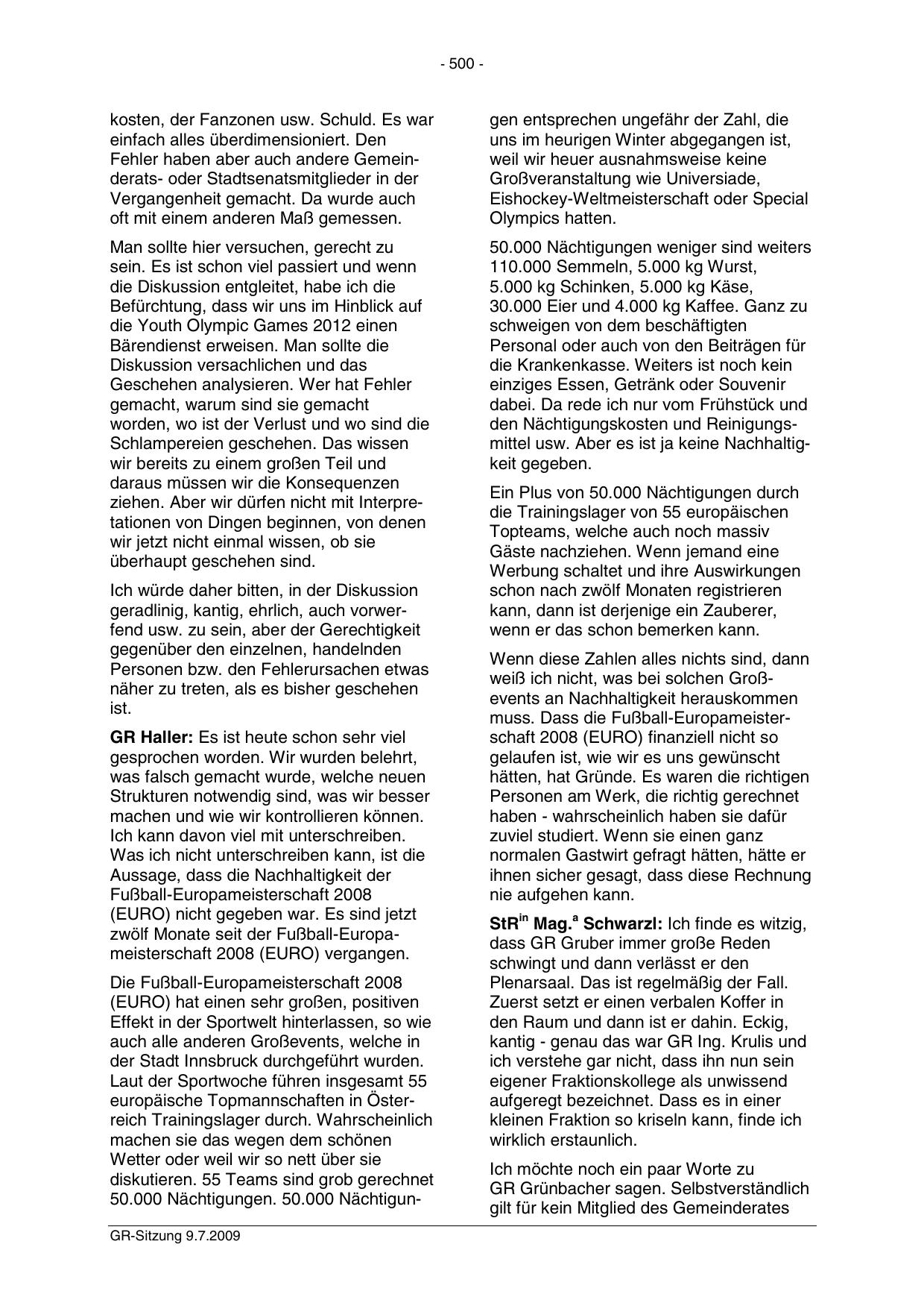 50.000 Nächtigungen. 50.000 NächtigunGR-Sitzung 9.7.2009