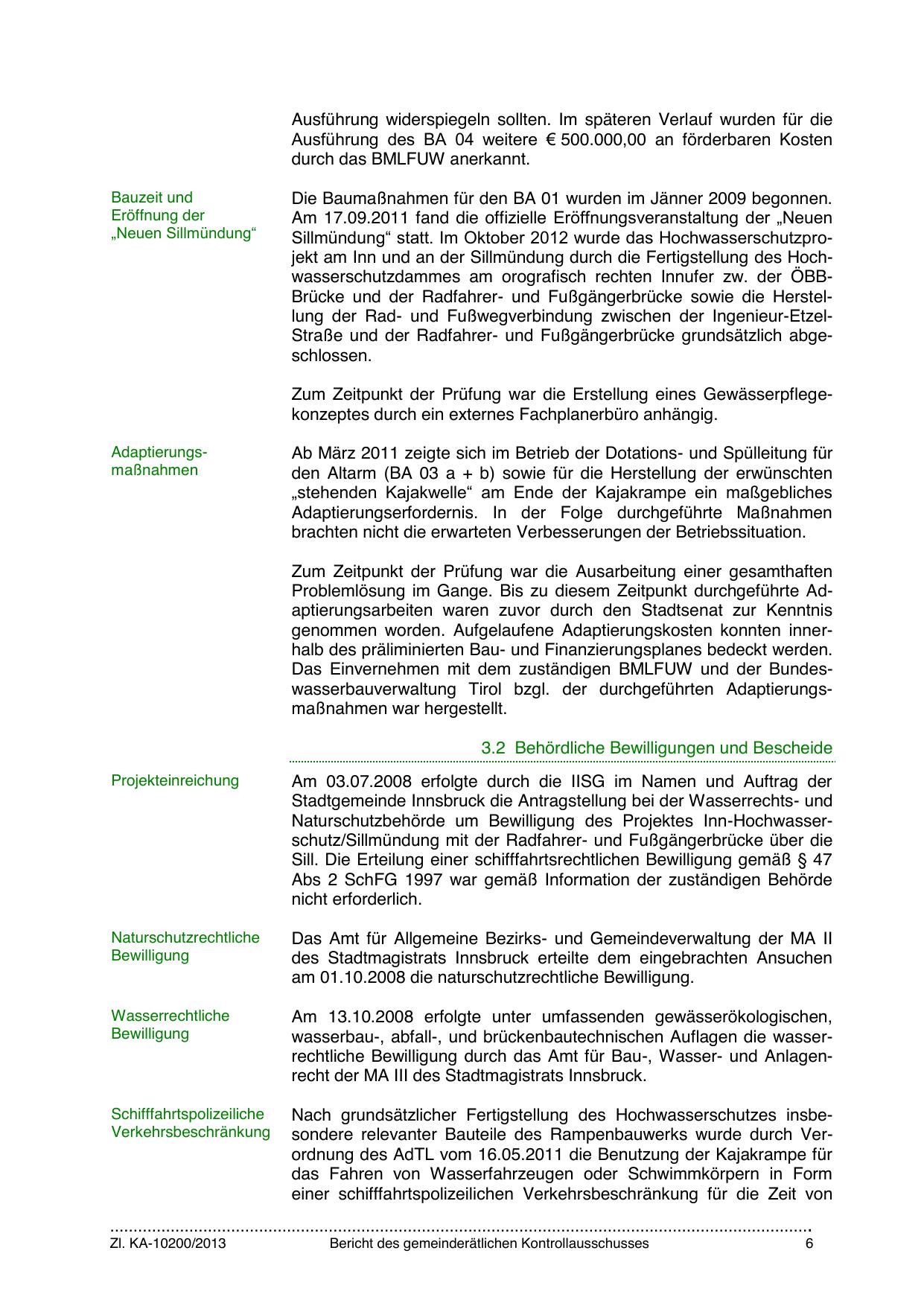wasserbau-, abfall-, und brückenbautechnischen Auflagen die wasserrechtliche Bewilligung durch das Amt für Bau-, Wasser- und Anlagenrecht der MA III des Stadtmagistrats Innsbruck.