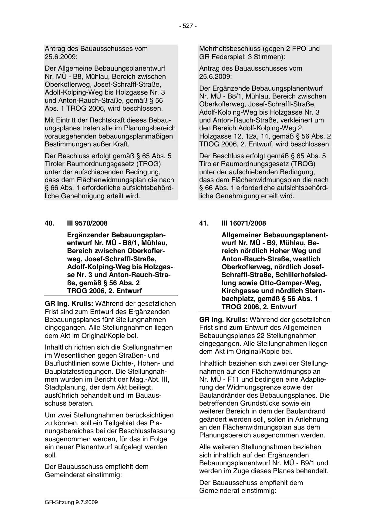 Mehrheitsbeschluss (gegen 2 FPÖ und