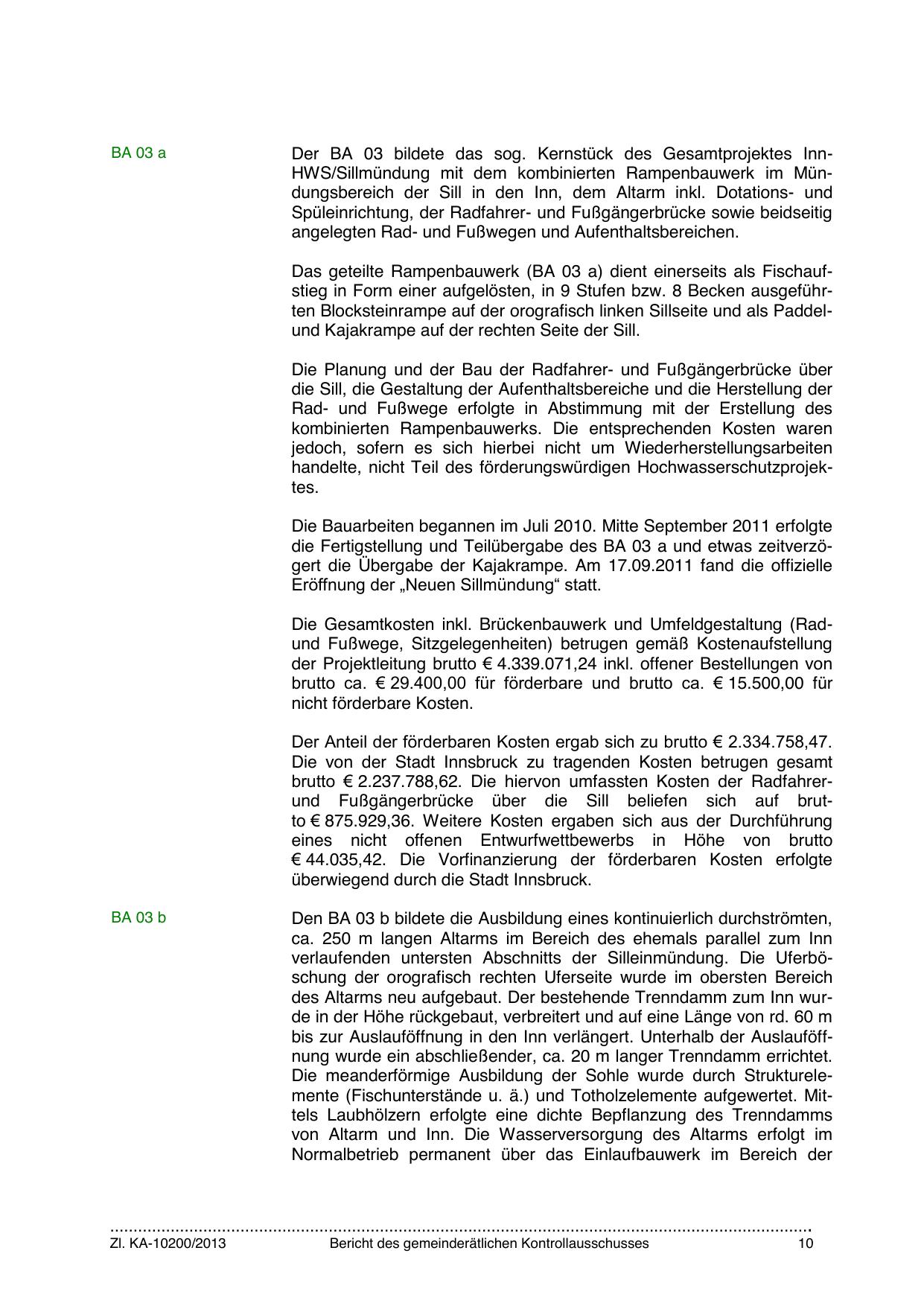Der BA 03 bildete das sog. Kernstück des Gesamtprojektes InnHWS/Sillmündung mit dem kombinierten Rampenbauwerk im Mündungsbereich der Sill in den Inn, dem Altarm inkl. Dotations- und