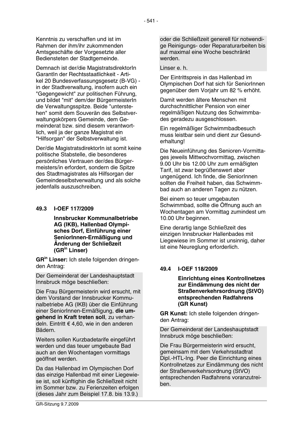 einer SeniorInnen-Ermäßigung, die umgehend in Kraft treten soll, zu verhandeln. Eintritt € 4,60, wie in den anderen