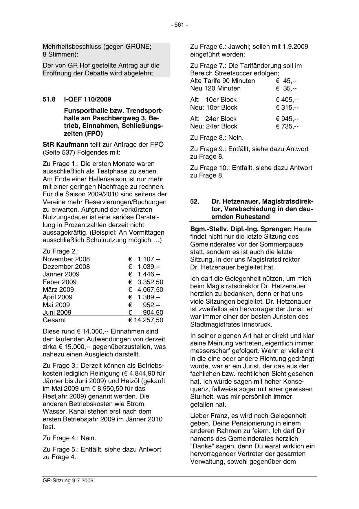 Zu Frage 6.: Jawohl; sollen mit 1.9.2009