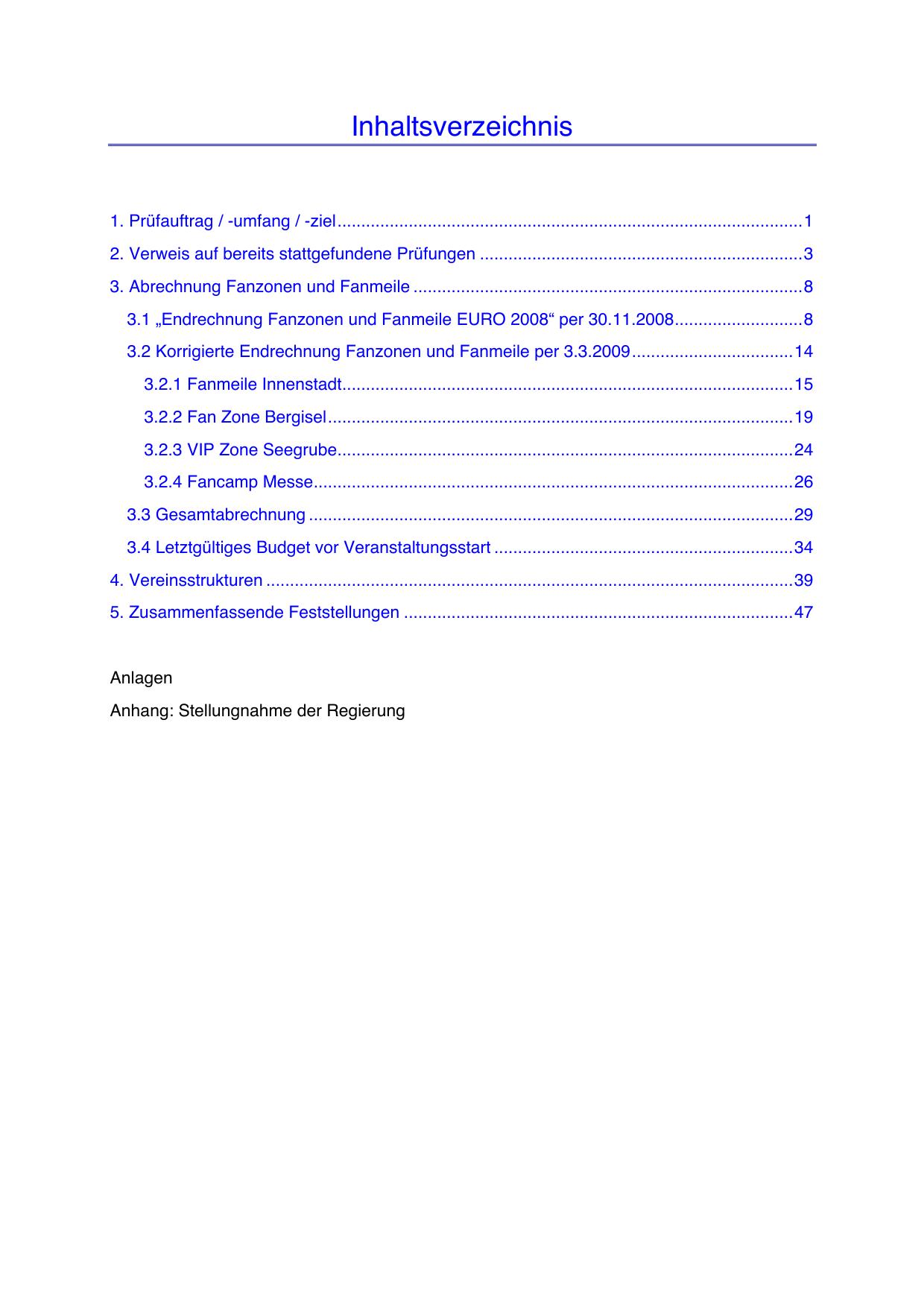 3.1 „Endrechnung Fanzonen und Fanmeile EURO 2008“ per 30.11.2008...........................8