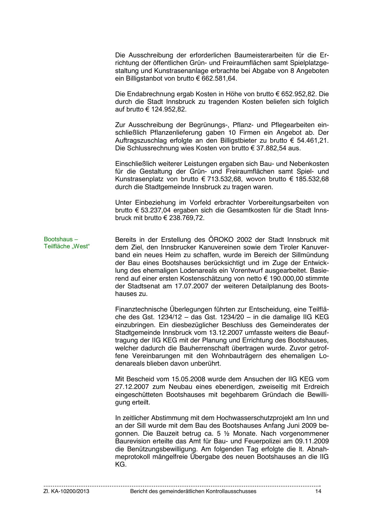 Stadtgemeinde Innsbruck vom 13.12.2007 umfasste weiters die Beauftragung der IIG KEG mit der Planung und Errichtung des Bootshauses,