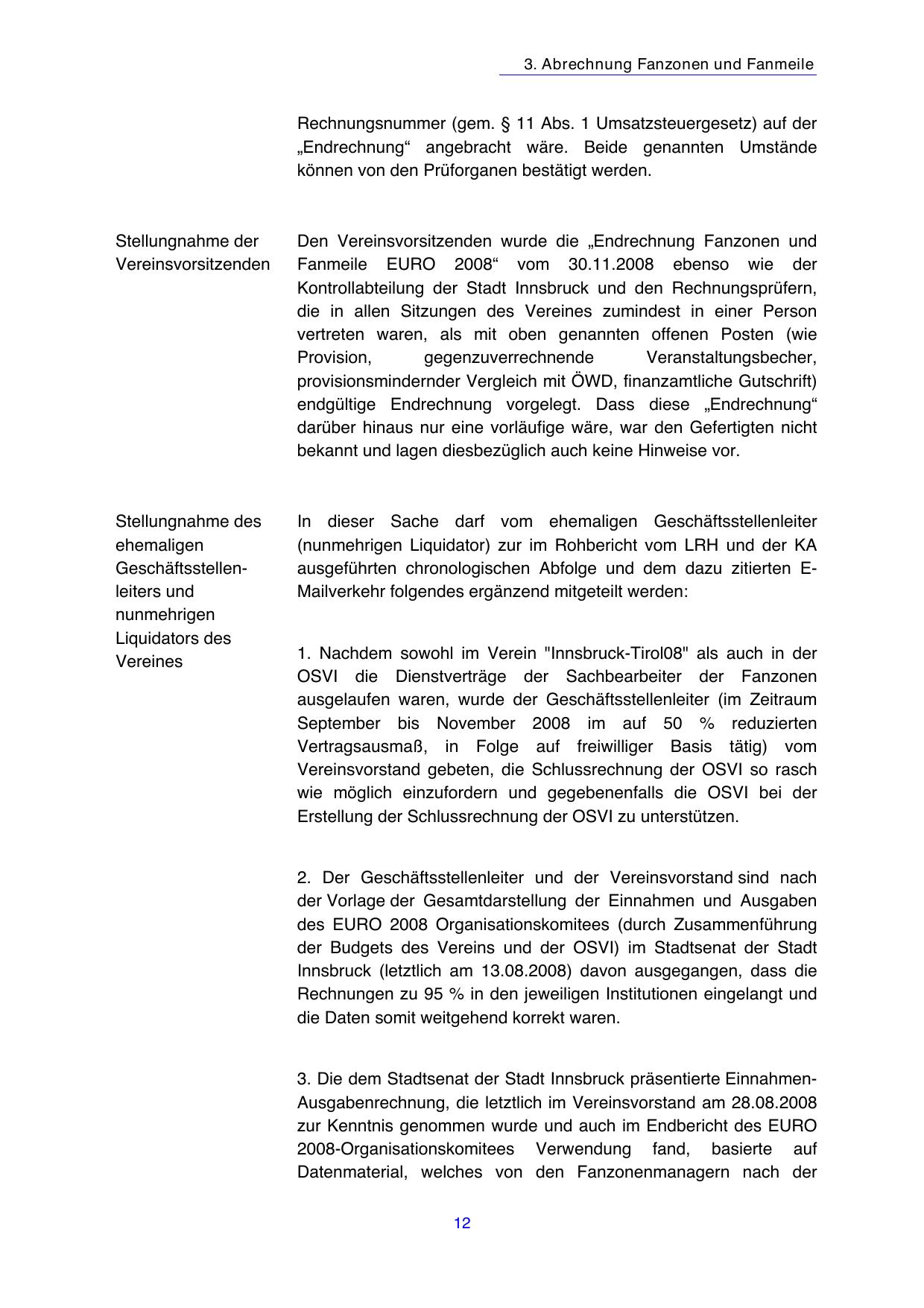 3. Die dem Stadtsenat der Stadt Innsbruck präsentierte EinnahmenAusgabenrechnung, die letztlich im Vereinsvorstand am 28.08.2008