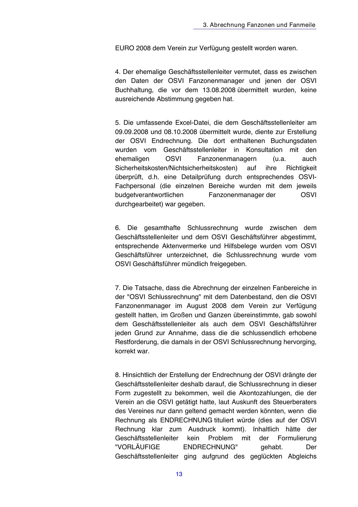 8. Hinsichtlich der Erstellung der Endrechnung der OSVI drängte der