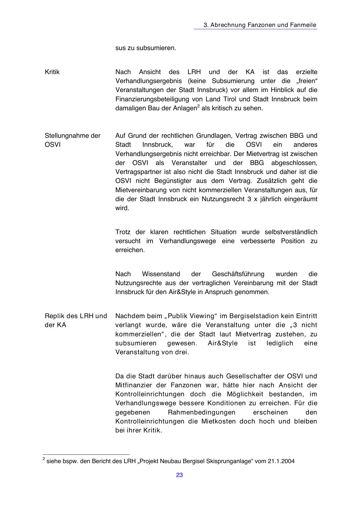 siehe bspw. den Bericht des LRH „Projekt Neubau Bergisel Skisprunganlage“ vom 21.1.2004