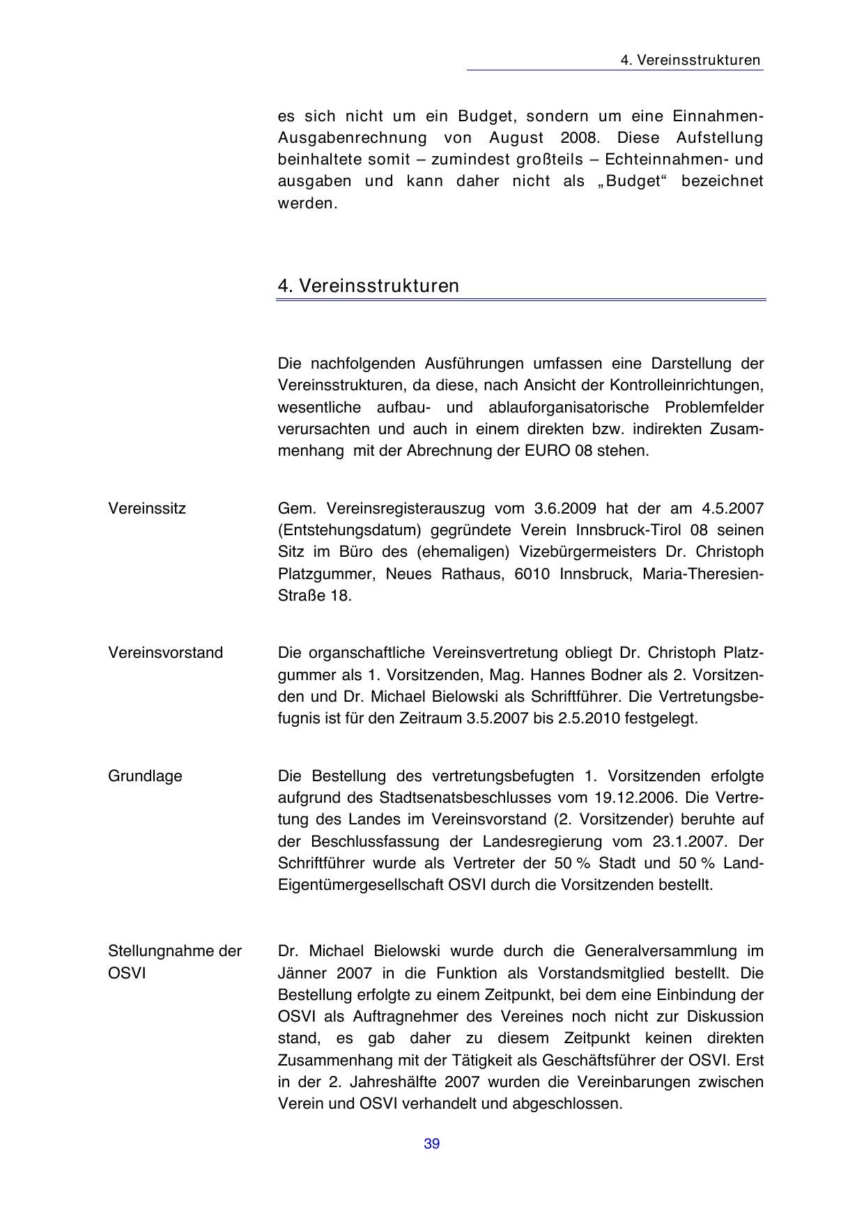 Vereinsstrukturen, da diese, nach Ansicht der Kontrolleinrichtungen,